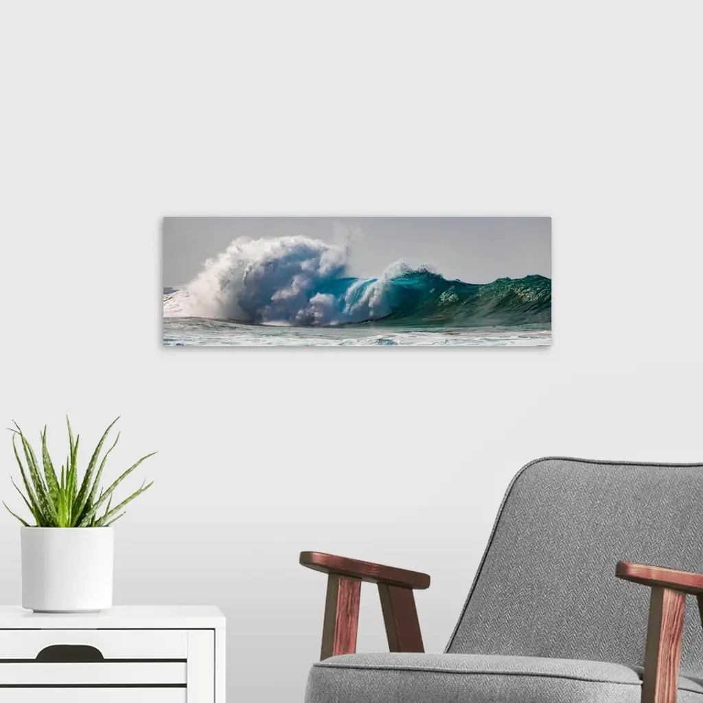 Tropical ocean waves crashing and splashing off the Na Pali coast; Kauai, Hawaii, united states of America.