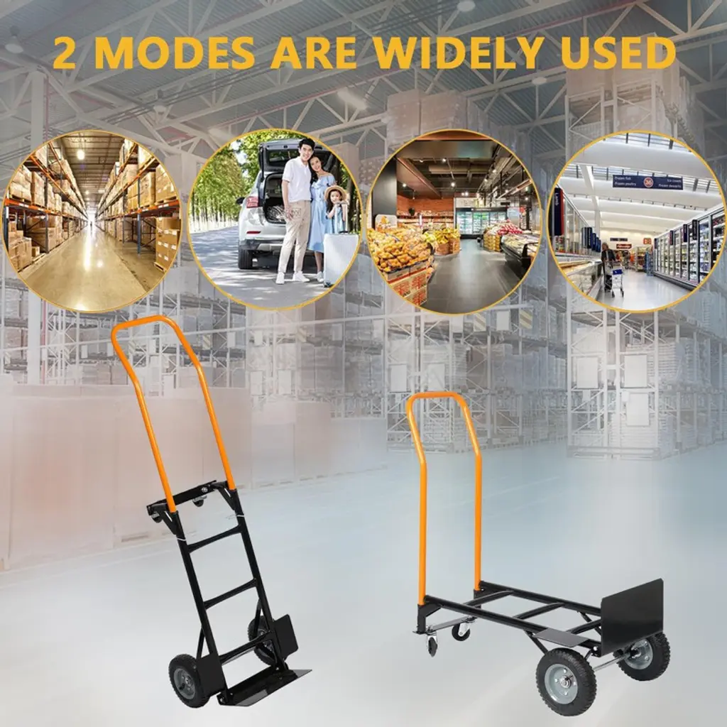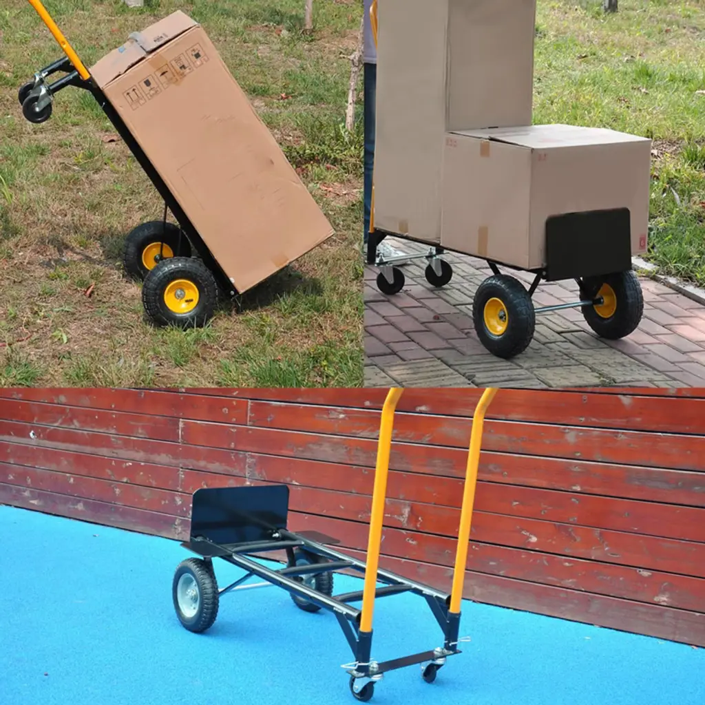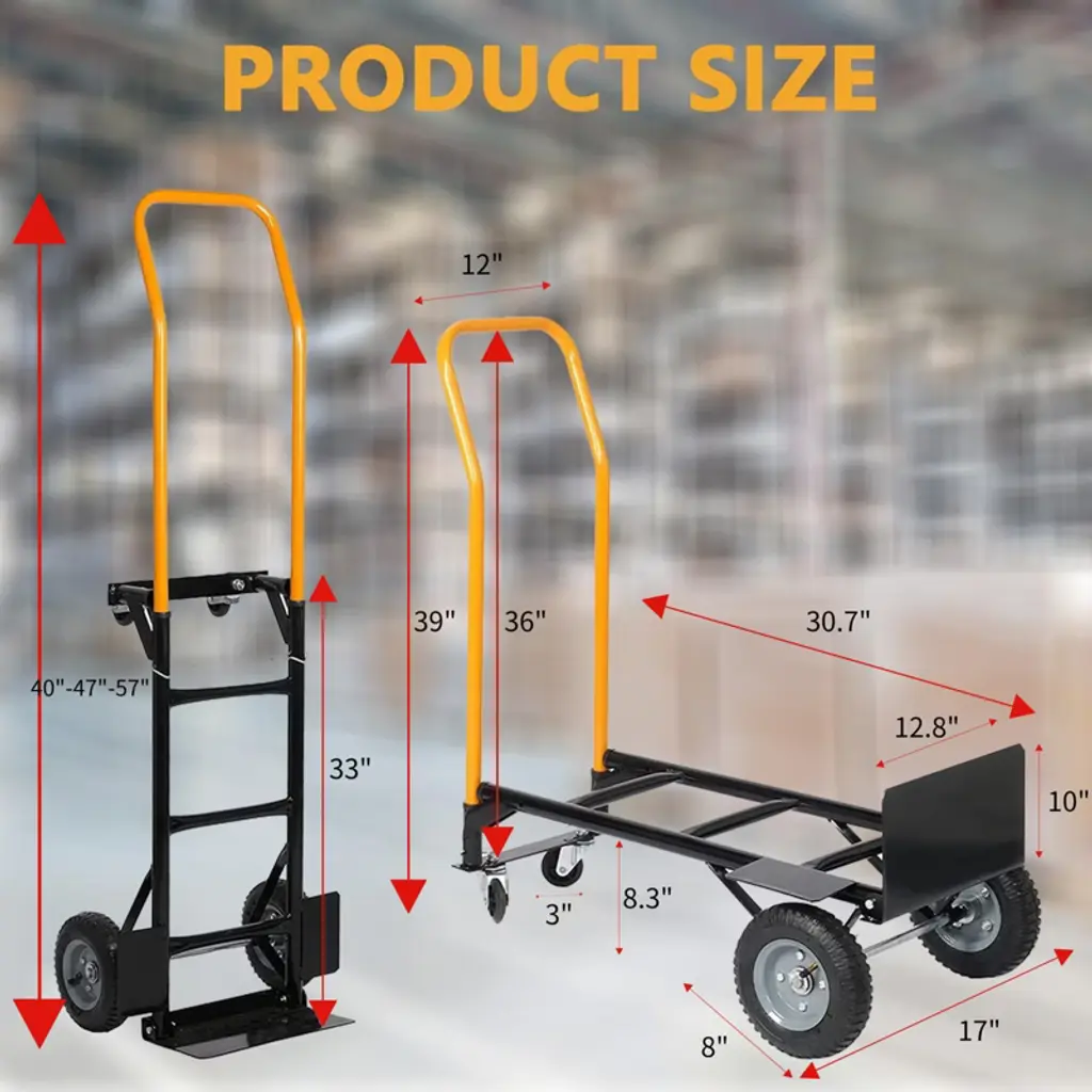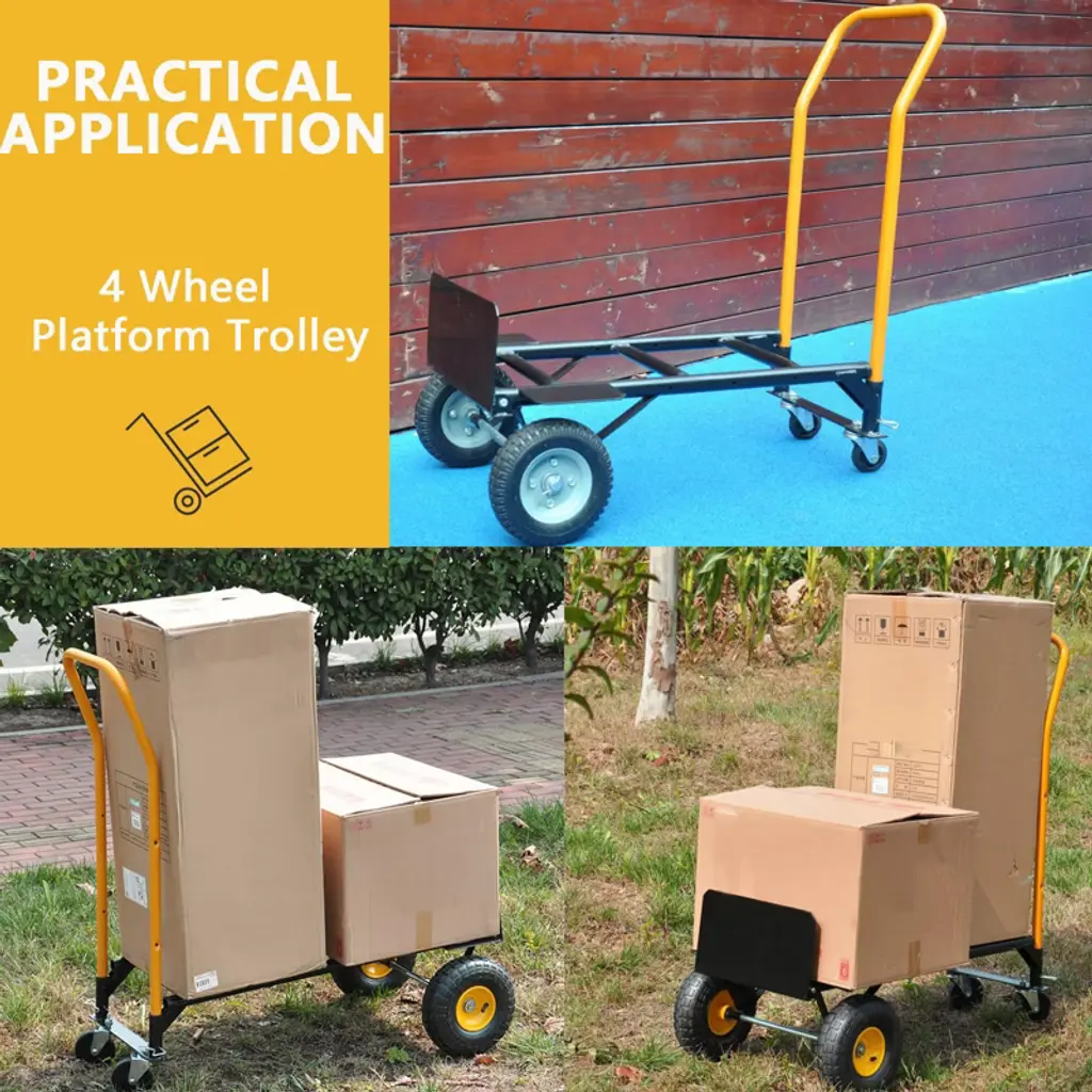 Tropow 4-wheel Convertible Hand Truck ̈C 2-in-1 Black Platform Dolly With Solid Tires (600lb Capacity For Warehouse/garden)