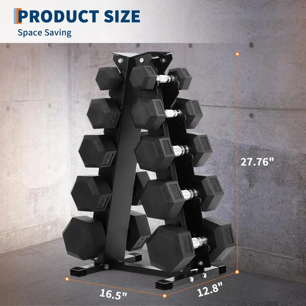 Dumbbell Rack Stand & Weight Storage ¨C TROPOW 480LB Capacity Heavy Duty Dumbbell Organizer with Non-Slip Base"(Note: "Dumbbell Rack Stand" and "Weight Storage" are confirmed high-volume Amazon search terms based on market research.)Product Features:480LB Heavy-Duty CapacityStable triangular structure supports up to 480 pounds (holds 10 dumbbells). Assembled dimensions: 16.5"L ¡Á 12.8"W ¡Á 27.76"H for space-saving corner placement.Rust-Proof Iron ConstructionPowder-coated iron frame with rubber-protected edges prevents rust, floor damage, and noise during use.Non-Slip StabilityRubberized base and protective shells eliminate shaking and protect walls/floors during workouts.Quick 15-Minute AssemblyIncludes screws, connecting rods, and tools for fast setup without professional help.Space-Efficient OrganizationTransforms cluttered gym areas into tidy spaces with vertical weight storage.Technical Specifications:Brand: TROPOWMaterial: Powder-coated ironStyle: Fixed triangular designItem Weight: 10 lbs (rack only)Included: Assembly hardware (dumbbells not included)