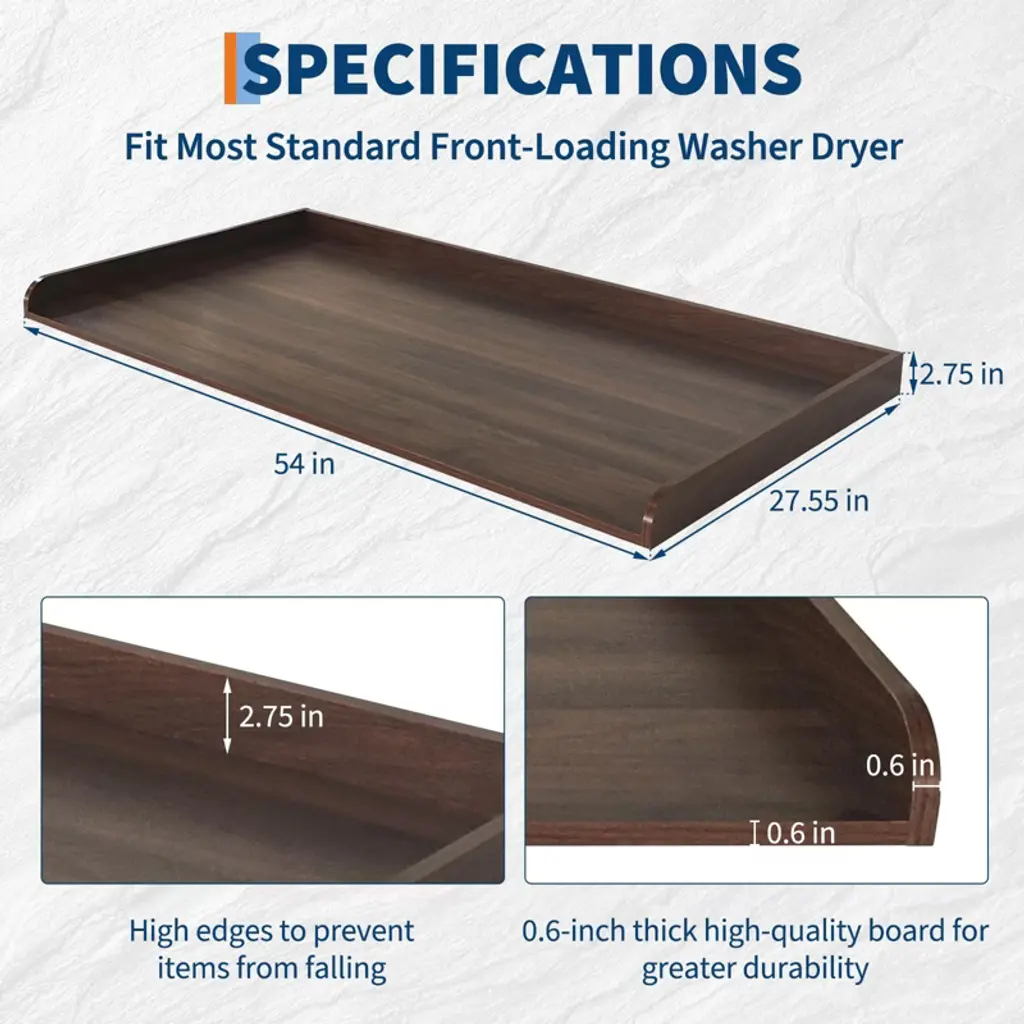 Laundry Countertop & Washer Dryer Cover ¨C TROPOW 54" Walnut Wood Organizer with 2.75" Edge Rails & Non-Slip Pads"(Note: "Laundry Countertop" and "Washer Dryer Cover" are confirmed high-volume search terms.)Product Features:54" Walnut Wood Single-Tier Design0.6" thick waterproof wood board (53.94"L ¡Á 27.56"W ¡Á 2.76"H) with heat/rust resistance for durable laundry room use.2.75" Protective Edge RailsPrevents items from falling, with rounded edges for safety (weight capacity: 29.98lbs).Non-Slip & Space-SavingIncludes anti-slip pads for stability and maximizes storage for folding/storing laundry essentials.Easy AssemblyPre-drilled holes and included accessories enable quick setup (under 10 minutes).Multi-Functional SurfaceDoubles as a folding station and storage shelf, enhancing laundry room organization.Specifications:Brand: TROPOWColor: WalnutMaterial: Waterproof-coated woodIncluded: Countertop, non-slip padsSpecial Features: Slip-resistant, space-saving