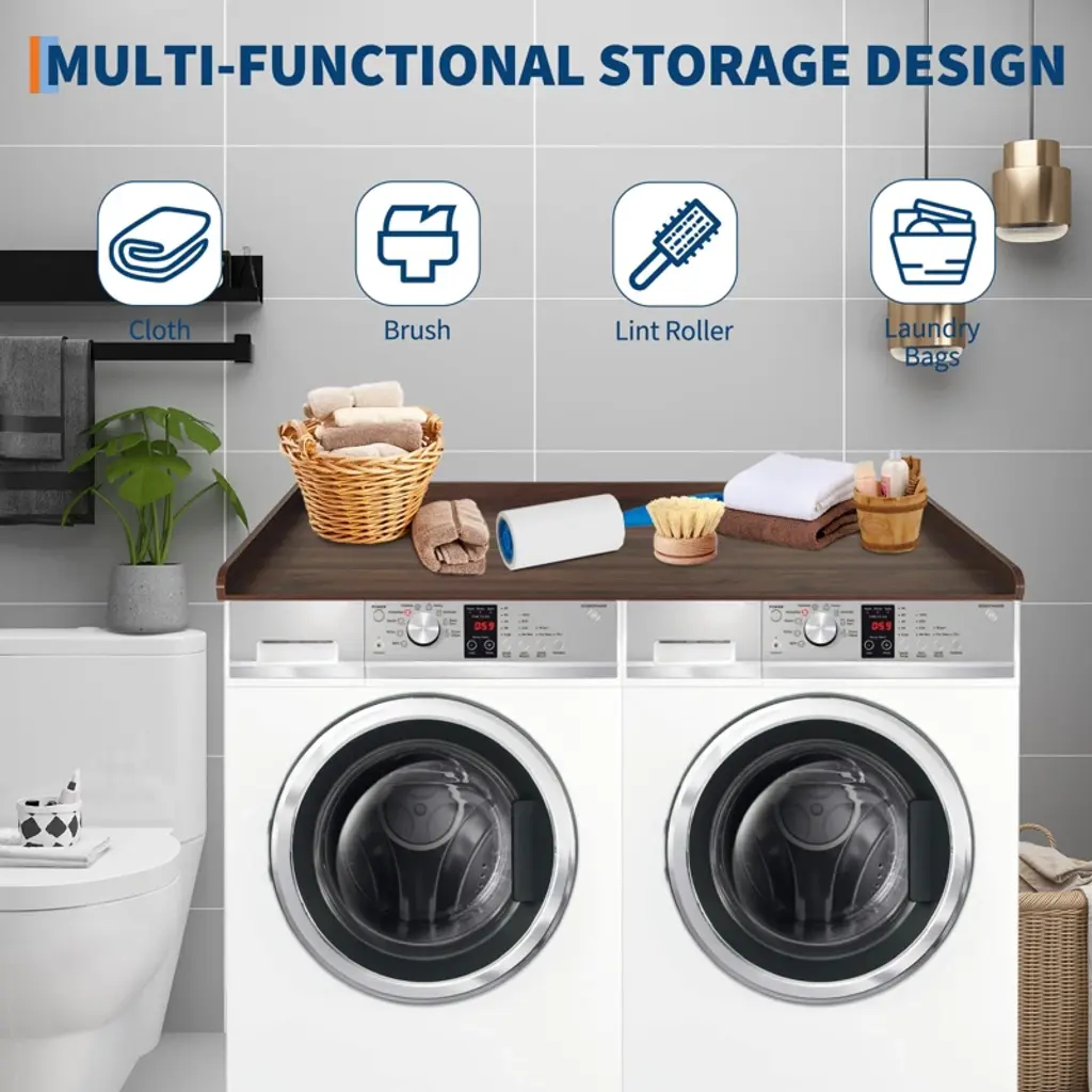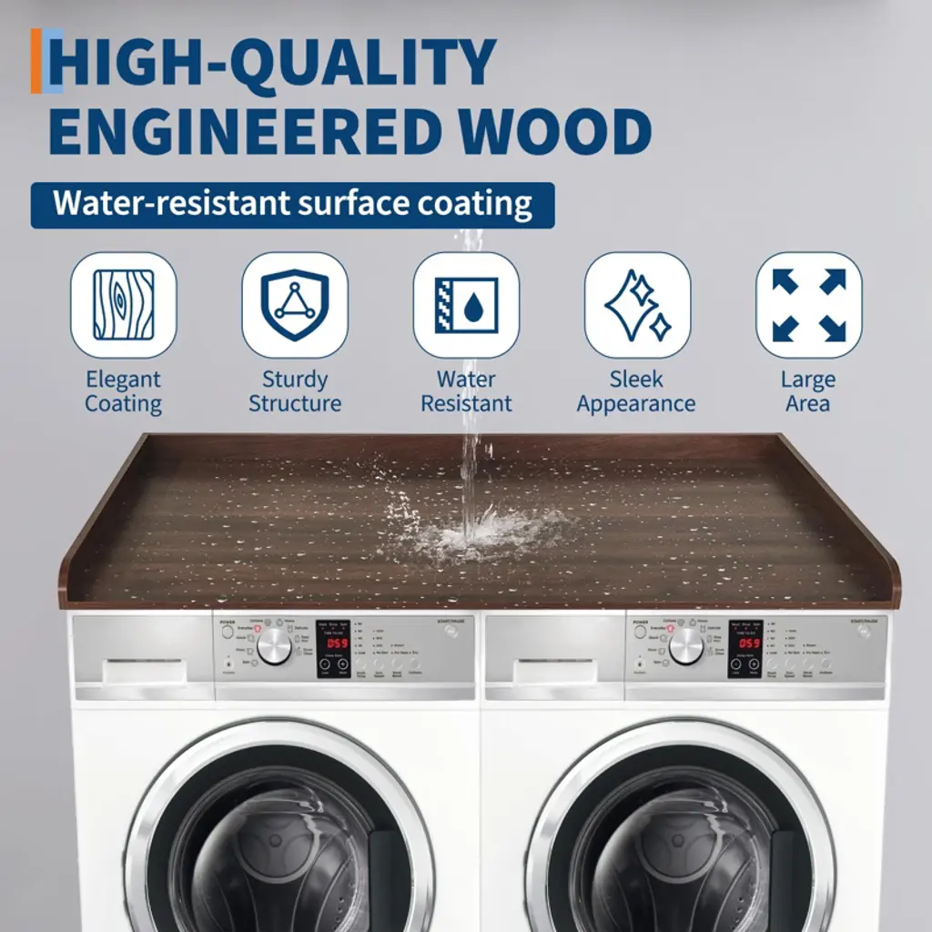 Tropow Walnut Laundry Countertop ̈C Waterproof Washer/dryer Cover With 2.75" Edge Rails & Anti-slip Pads For Laundry Room Storage