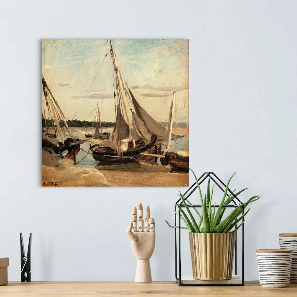Trouville, Fishing Boats Stranded In The Channel, By Jean-Baptiste-Camille Corot