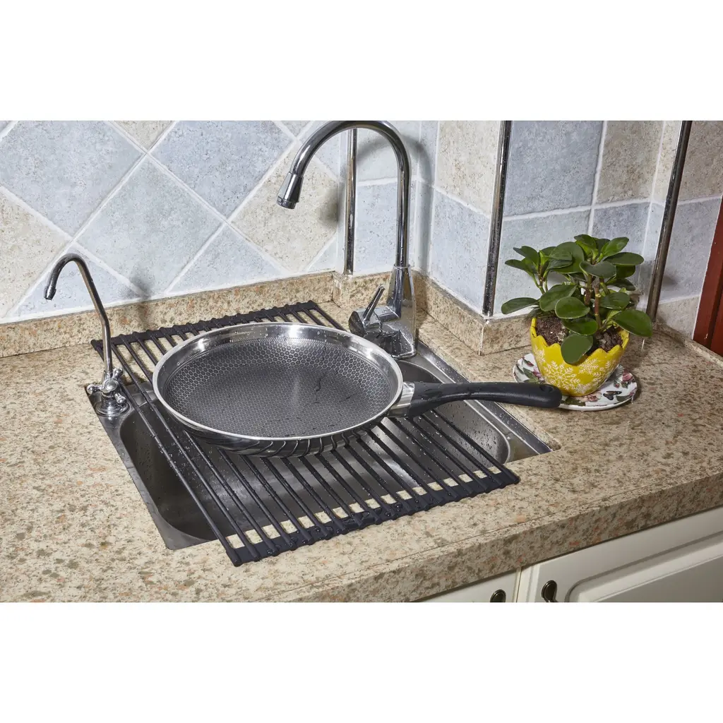 Simplify your kitchen duties with the True & Tidy Roll-up Multifunction Drying Rack. Made of stainless steel with a rust-resistant and nonslip silicone coating, this versatile mat can be used for drying dishes, vegetables, and other kitchen accessories. It rolls up easily for convenient storage and takes up minimal space on your countertop.Features:Other section: