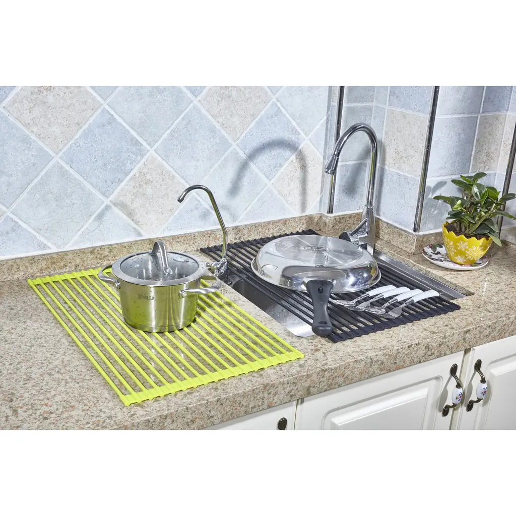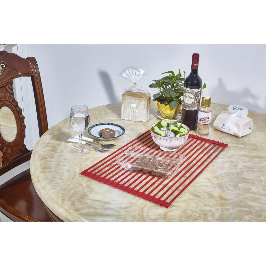 Simplify your kitchen duties with the True & Tidy Roll-up Multifunction Drying Rack. Made of stainless steel with a rust-resistant and nonslip silicone coating, this versatile mat can be used for drying dishes, vegetables, and other kitchen accessories. It rolls up easily for convenient storage and takes up minimal space on your countertop.Features:Other section: