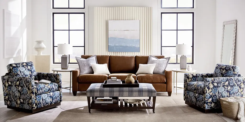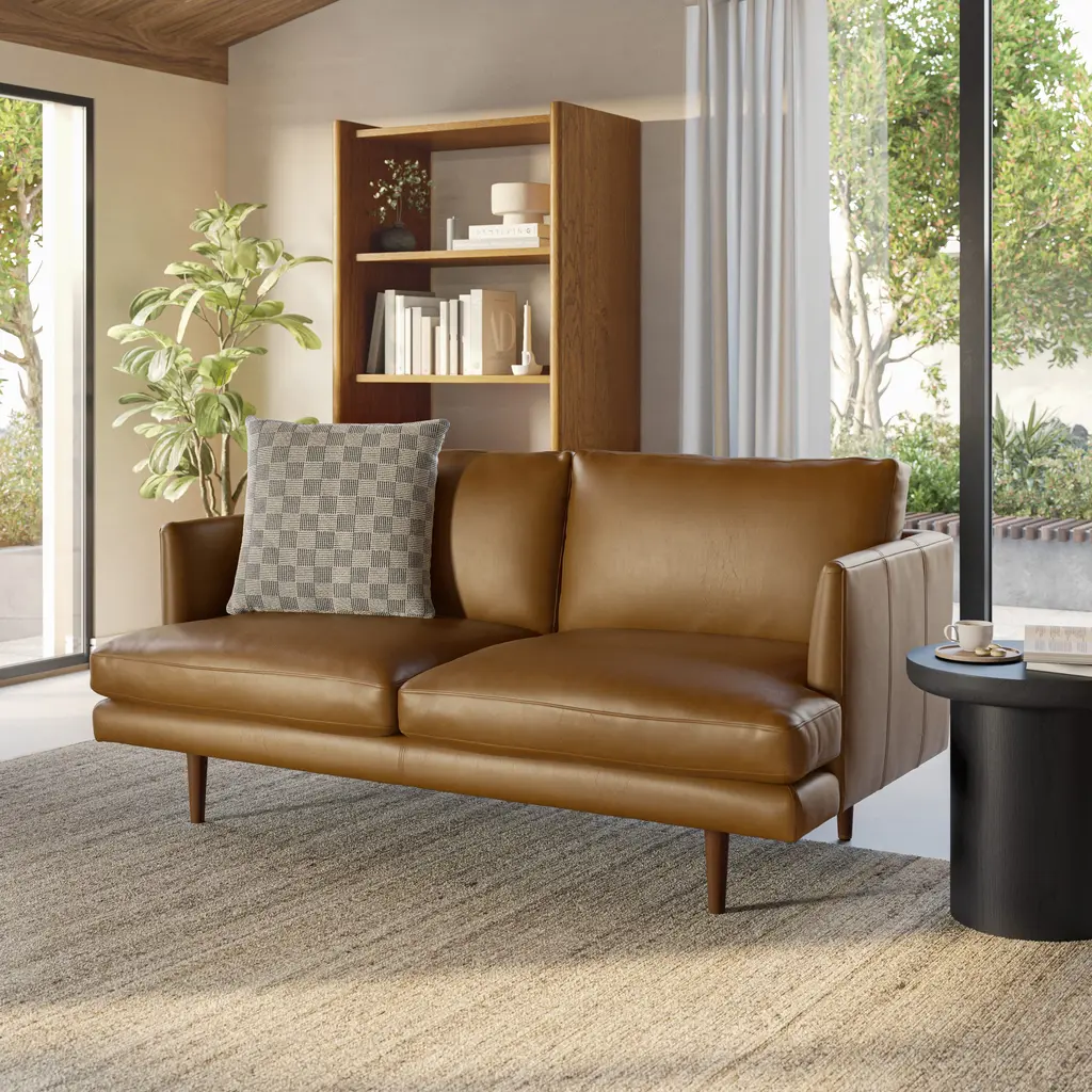Sleek, smooth, and showing off the broad musculature of a large track arm, Bassett's True Custom Leather Large Track Arm Studio Sofa is a superlatively cushy interpretation of modern seating. Wrap this sofa's clean lines with your choice of luxe leather, buoyed in knowing that it will grow a rich patina over time. Personalize your sofa further with options of comfort and detailing, like cushion choice. (PS. We love this sofa in pairs - it makes the perfect modern twin set!) Also available in a sleeper version with a queen standard innerspring mattress.