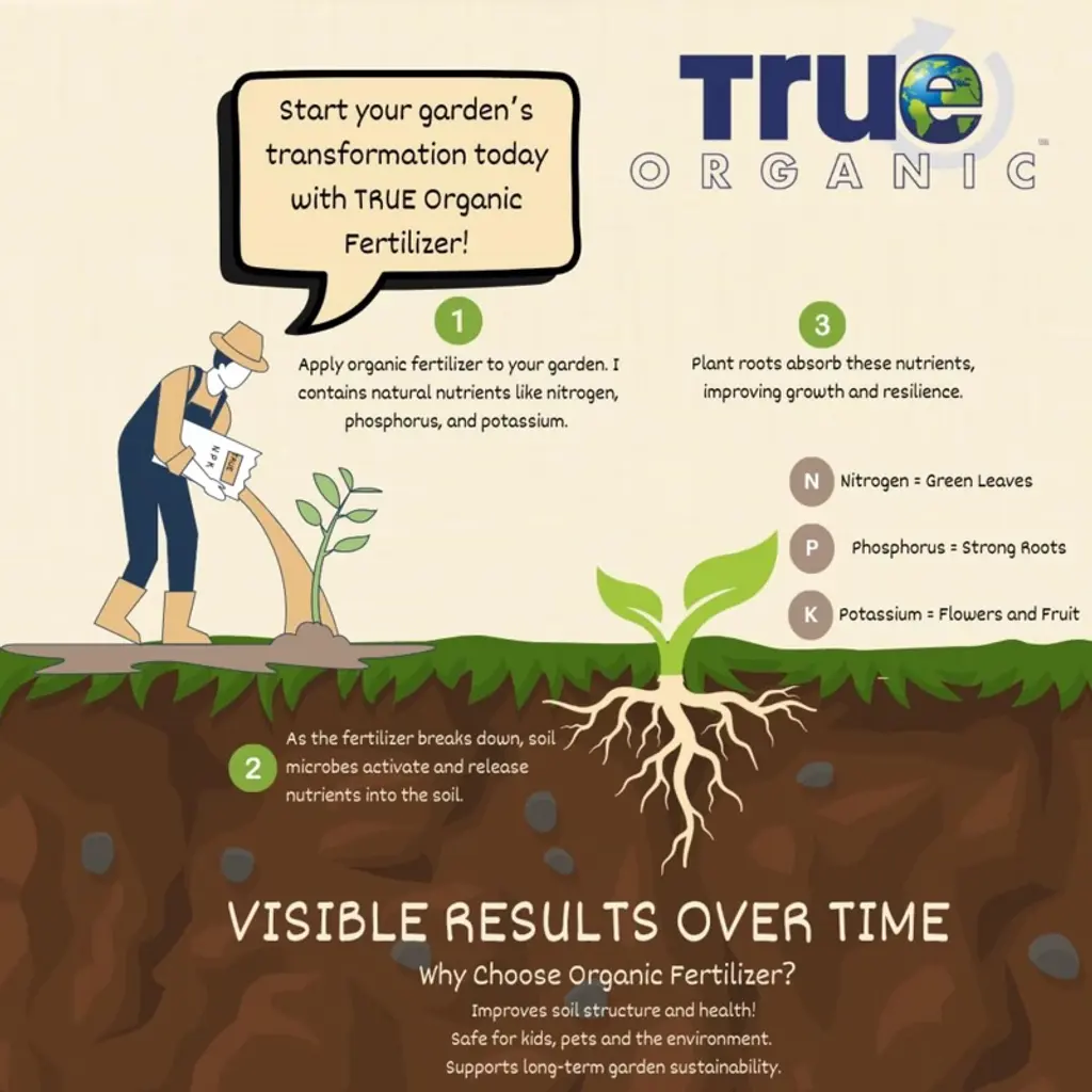 True Organic Meal is a 100% organic fertilizer that enriches your garden soil with calcium, phosphates, and slow release nitrogen – promoting strong root development and vibrant growth in plants. Great for roses, tomatoes, peppers, fruit trees and many other plants. Great for cultivating garden soil, boosting your lawn, or feeding specific plants like cannabis.