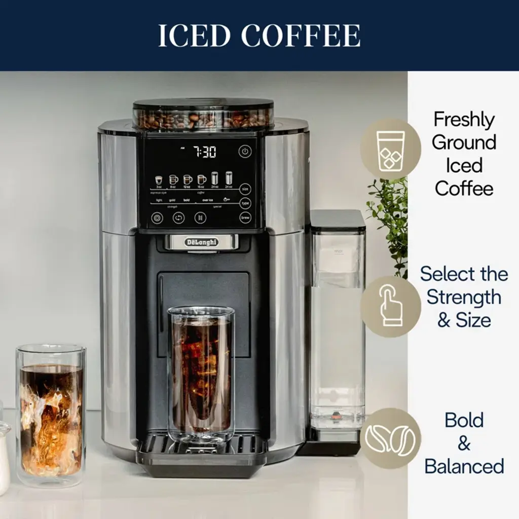 The DeLonghi TrueBrew™ is an innovative, automatic coffee machine that brews drip coffee from fresh, whole coffee beans, all at the touch of a button. TrueBrew™ is built to suit your coffee needs for consistent, freshly ground coffee every time. Simply pour in your favorite beans, press the brew button, and watch TrueBrew™ take care of the rest. You can even pre-schedule your brew time with auto-on. DeLonghi’s proprietary bean extract technology automatically grinds, doses, and brews the beans to capture the coffee’s full flavor and aroma and then crafts the perfect cup for you. TrueBrew™ uses whole beans, not plastic pods or filters, creating zero waste. TrueBrew™ combines our most precise and adaptive brewing technology with true one-touch simplicity, bringing you the purest taste possible, exactly how you like it, all at the press of a button. Transform your at-home coffee experience with TrueBrew™ by DeLonghi.