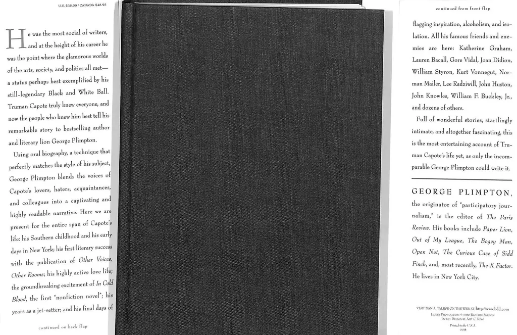 "Truman Capote: In Which Various Friends, Enemies, Acquaintances, And Detractors Recall His Turbulent Career" 1997 Plimpton, George