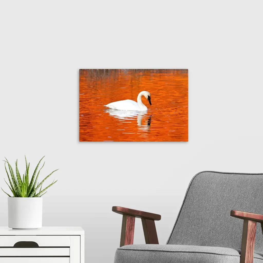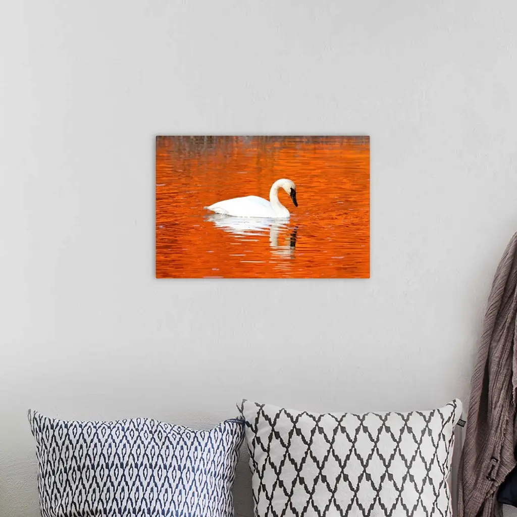Trumpeter Swan in the sunset-it water of Potter Marsh, Anchorage, Alaska wall art for home and office decor. Discover canvas art prints, photos, mural, big canvas art and framed wall art in GreatBigCanvas.com's varied collections.