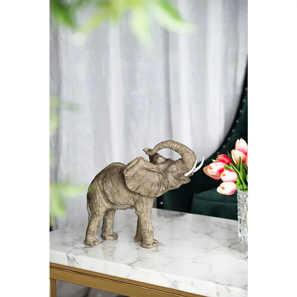 When an elephant’s trunk is raised, it is symbolic of good fortune, which makes the Tai Elephant Accent, Trumpeting, a popular home and office accent.; The elephant is a powerful symbol in feng shui design symbolizing good luck, fertility, wisdom and kindness.; The Features: Carefully constructed to offer years of enjoyment.; Product Details: 51.5% Calcium Carbonate,45% Polyesternare,1.5% Paint,1% Plastic,1% Hardener/Accelerant; Incorporate it into your living spaces.; Measurement: 15x8x12(Inches); Weight:3.3 lbs