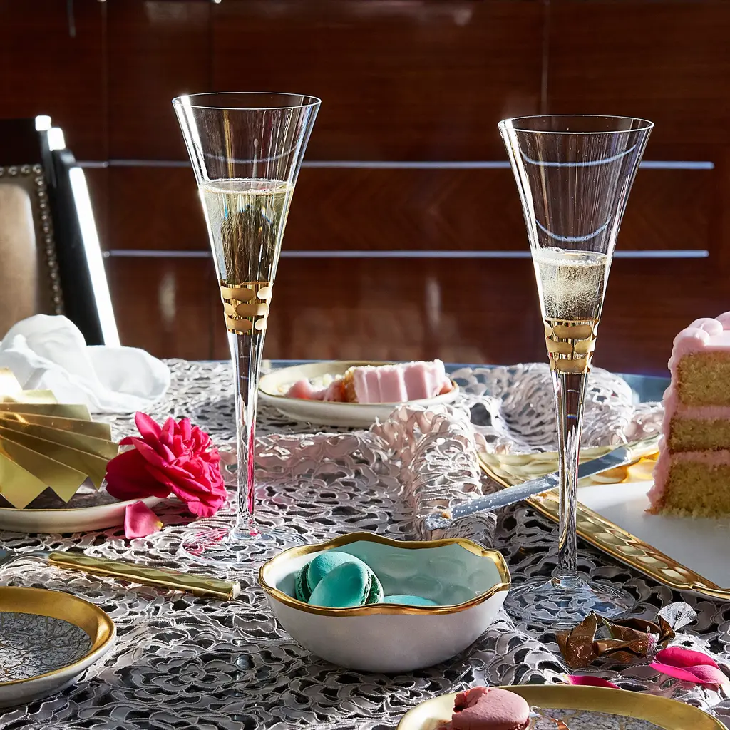 Michael Wainwright's Truro Collection evokes the timeless shifting of ocean, wind and sand. This hand-decorated crystalline glass collection features intricately carved details on a polished background, adding texture and movement to your tabletop.