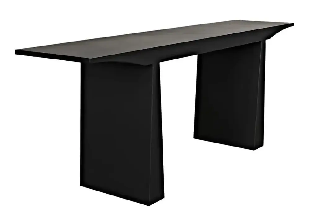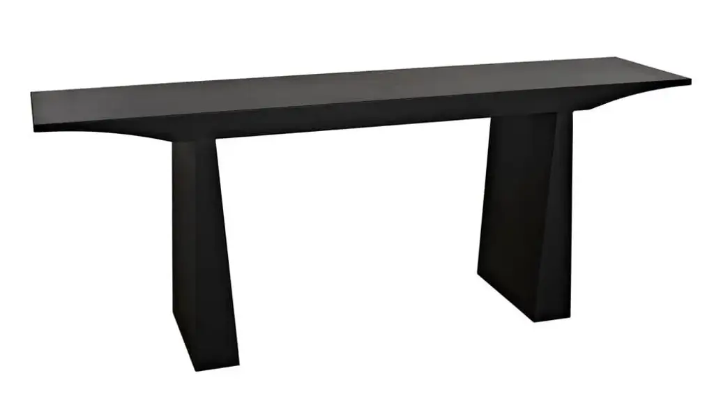 This pared down design is the essence of simplicity. The Truss console blends a Zen inspired design with industrial strength matte black steel, and features a plank style top with tapered ends.