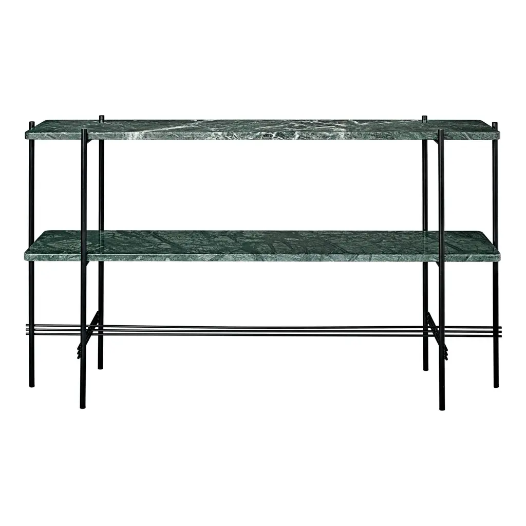 Copenhagen's Gubi does a design double take with this version of its elegant TS Console. Two shelf surfaces in either sumptuous marble or richly hued solid glass combine storage with high style in a framework of black or brass-finish steel. As a standout media center, dining room sideboard or resting spot for art volumes and other treasures, the console by design duo GamFratesi is gorgeously scaled to suit a variety of settings.