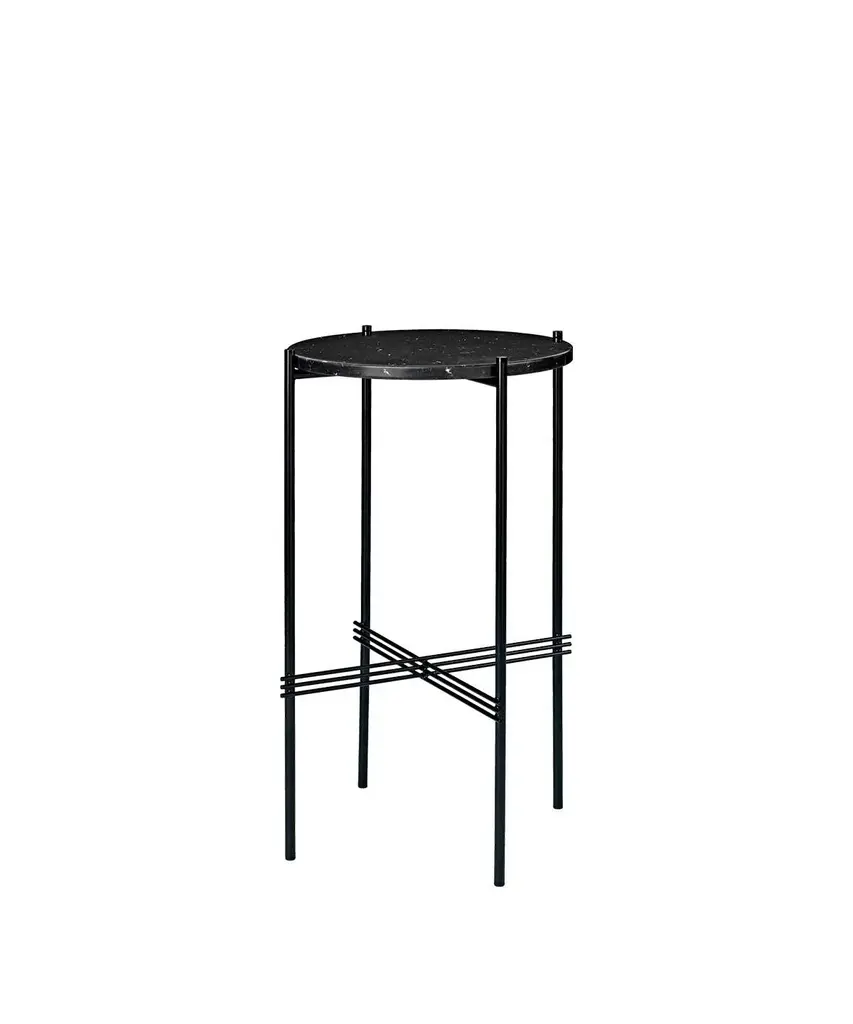 An elegant marble table that blends rich materiality with a graphic design. TS, short for The Standard, is inspired by an Art Deco building in Copenhagen of the same name. The table collection is the work of design duo GamFratesi, whose work blends Danish craftsmanship with Italian conceptualism. The round marble tabletop is supported by a black lacquered frame, referencing materials found in the original TS building. The sophisticated marble top, balanced by its simple black frame, creates a composed, yet statement-making design. The collection is manufactured in Denmark by Gubi - a Copenhagen-based purveyor of both historic and contemporary design.