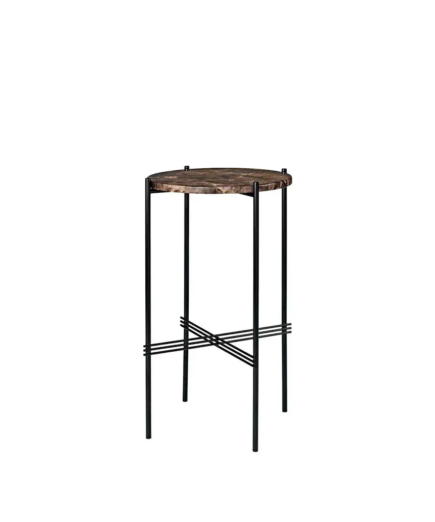 An elegant marble table that blends rich materiality with a graphic design. TS, short for The Standard, is inspired by an Art Deco building in Copenhagen of the same name. The table collection is the work of design duo GamFratesi, whose work blends Danish craftsmanship with Italian conceptualism. The round marble tabletop is supported by a black lacquered frame, referencing materials found in the original TS building. The sophisticated marble top, balanced by its simple black frame, creates a composed, yet statement-making design. The collection is manufactured in Denmark by Gubi - a Copenhagen-based purveyor of both historic and contemporary design.
