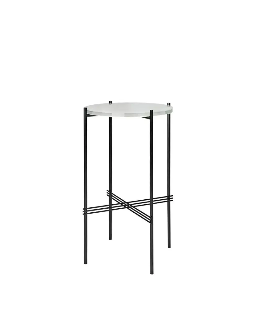 An elegant marble table that blends rich materiality with a graphic design. TS, short for The Standard, is inspired by an Art Deco building in Copenhagen of the same name. The table collection is the work of design duo GamFratesi, whose work blends Danish craftsmanship with Italian conceptualism. The round marble tabletop is supported by a black lacquered frame, referencing materials found in the original TS building. The sophisticated marble top, balanced by its simple black frame, creates a composed, yet statement-making design. The collection is manufactured in Denmark by Gubi - a Copenhagen-based purveyor of both historic and contemporary design.
