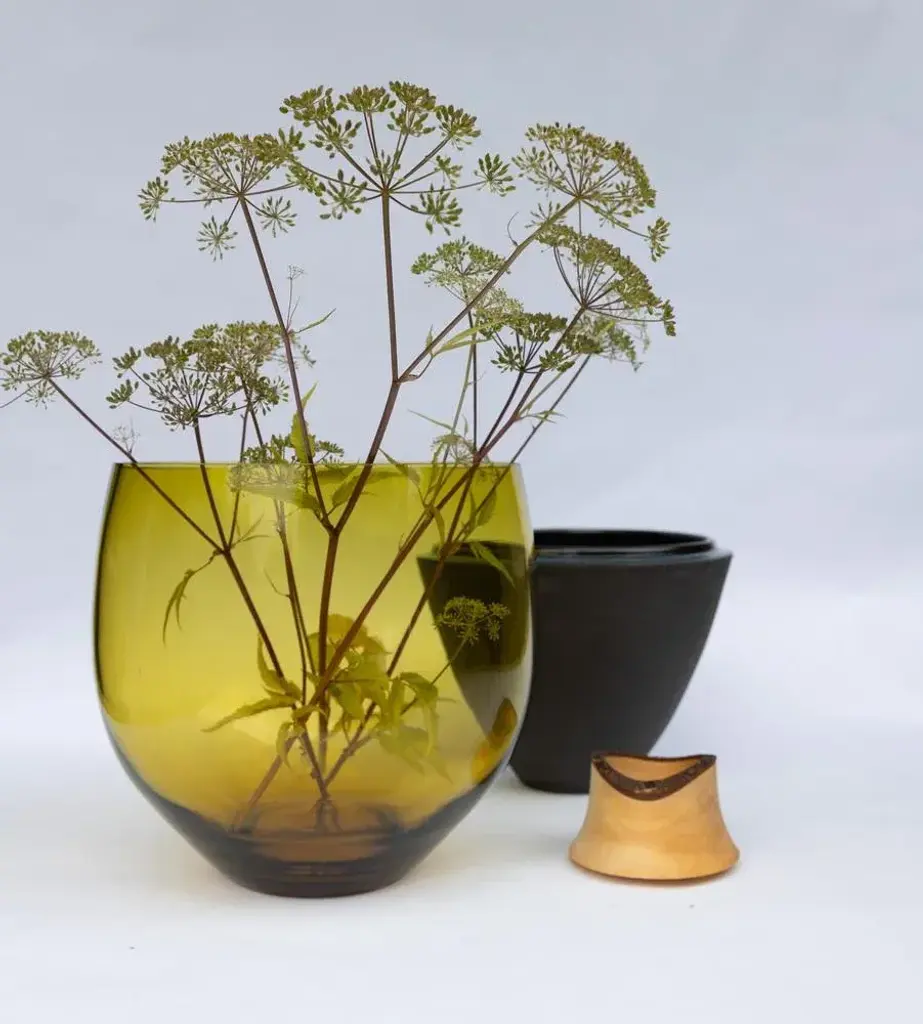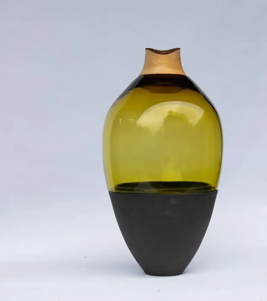 Tsv5 stacking olive vessel by pia wüstenberg unique piece. Handmade in europe. Dimensions: ø 26 x h 65 cm. Materials: handblown glass, ceramic and hand-turned wood. Available in different color options. Dimensions are approximate, due to the handmade nature of the materials. Please contact us. Our large, earthly stacking vessels. Beautifully tactile, the contrast between the soft wood, the porous ceramic and the hard translucent glass is emphasized through the scale of these pieces. Pia wüstenberg is a creative with a passion for materials and craft. She graduated from the royal college of arts design products course in 2011 and was running her own freelance studio in east london till summer 2017. After this her studio relocated to rural north germany, allowing better access to the european crafts and more time to dream. Pia is a freelance designer at utopia and utility and owner of the brand (which involves everything from heavy lifting to drawing up new ideas). This piece is attributed to the mentioned designer/maker. It has no attribution mark and no official proof of authenticity, however it is well documented in design history. I take full responsibility for any authenticity issues arising from misattribution