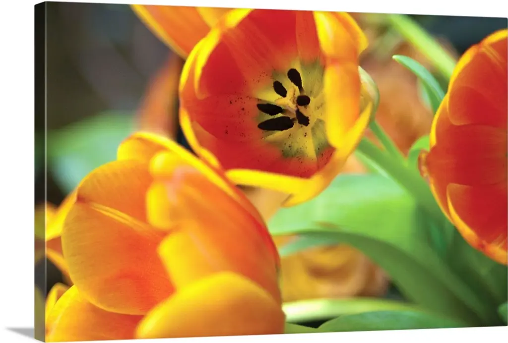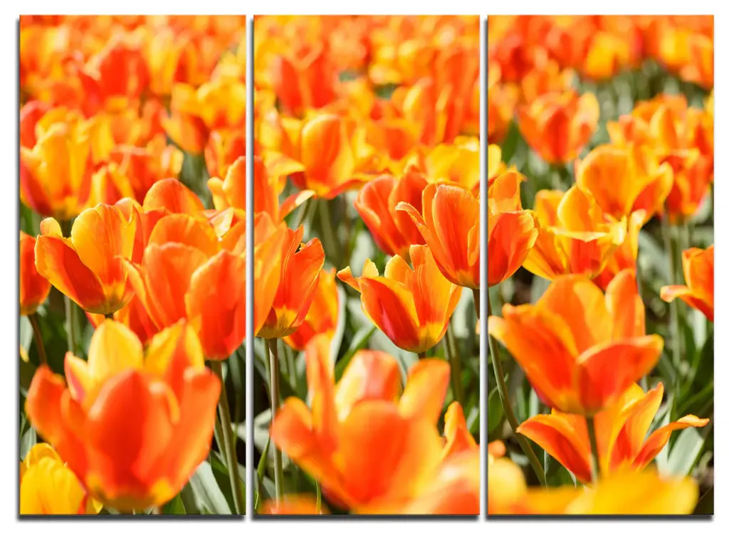 Close up photograph of spring blossoms growing closely together in a landscaped setting.