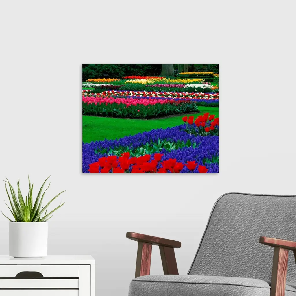 Tulip field, Keukenhof, Holland wall art for home and office decor. Discover canvas art prints, photos, mural, big canvas art and framed wall art in GreatBigCanvas.com's varied collections.