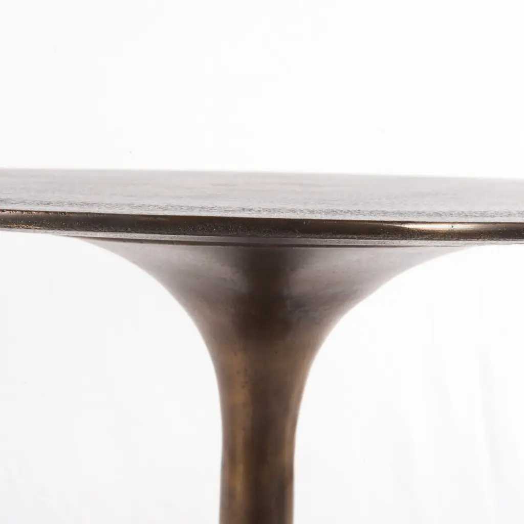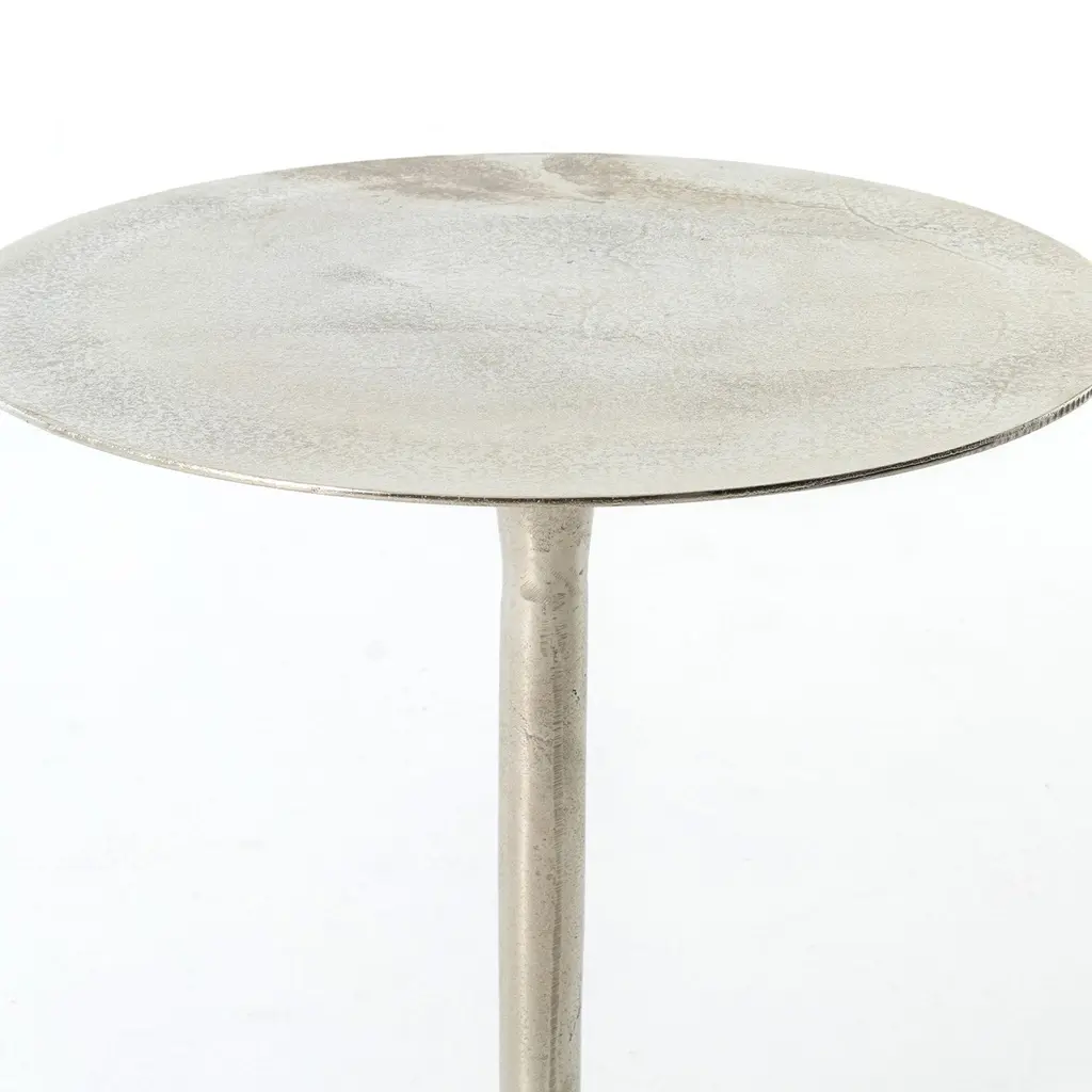 Time to shine. Textural cast aluminum finished in raw nickel adds modern glamour to the tulip table. Sized to nestle beside a sofa or between two chairs.