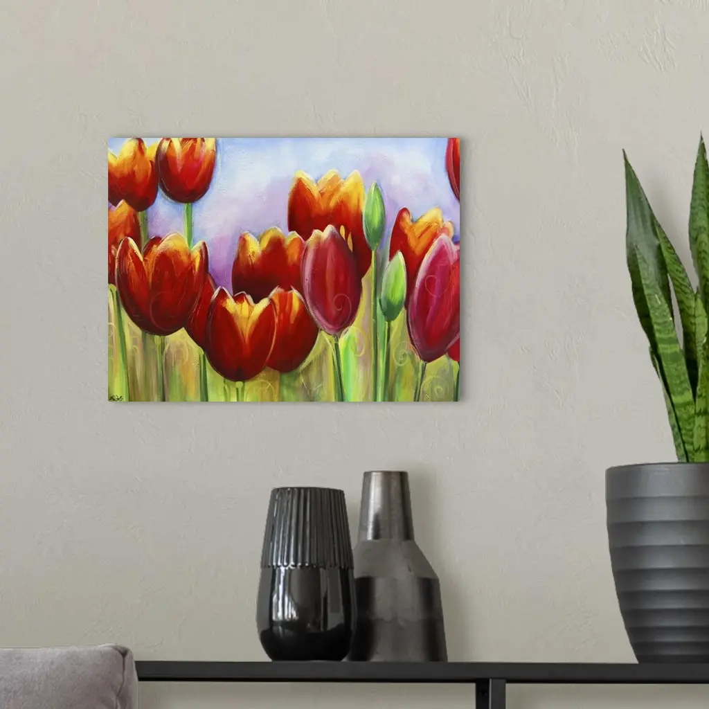 Tulips in bloom wall art for home and office decor. Discover canvas art prints, photos, mural, big canvas art and framed wall art in GreatBigCanvas.com's varied collections.