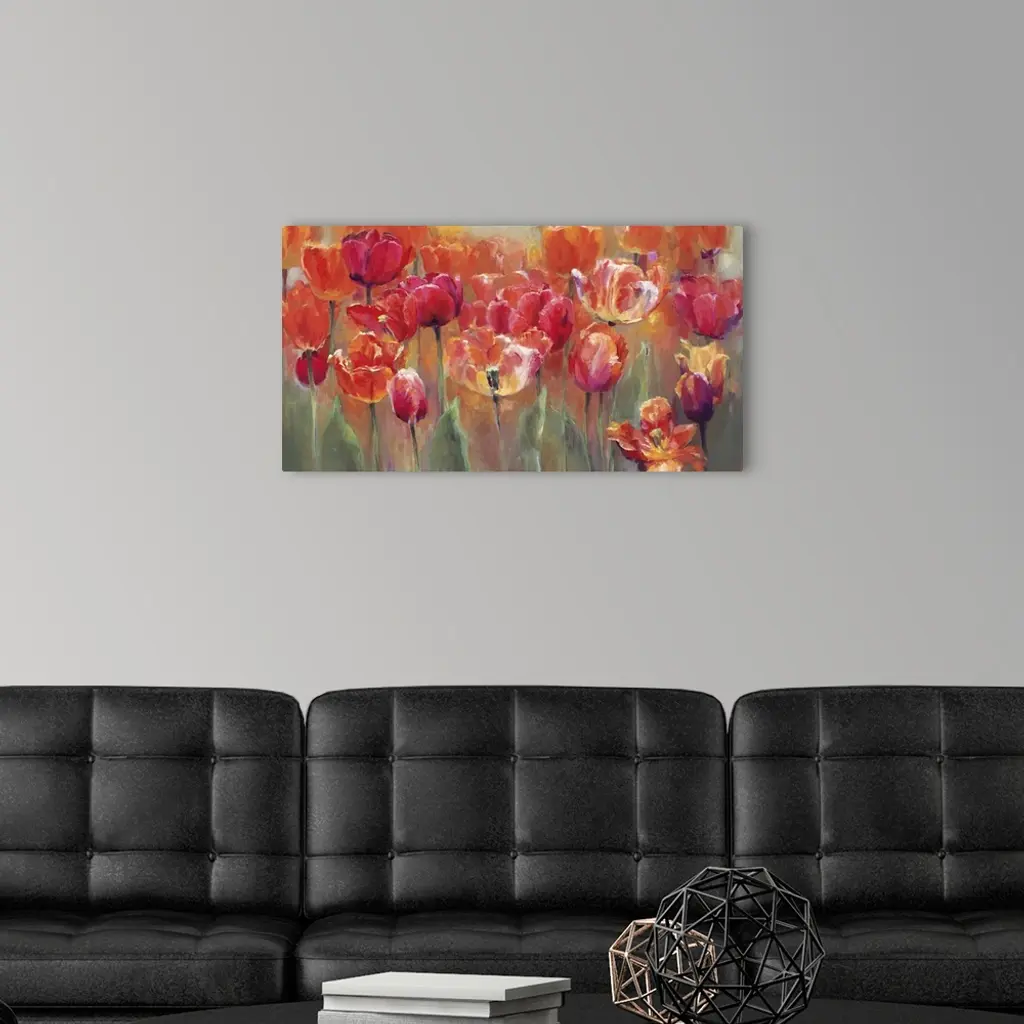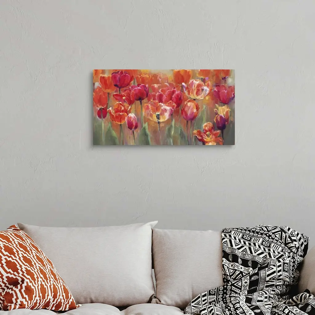 Tulips In The Midst - Pink And Red wall art for home and office decor. Discover canvas art prints, photos, mural, big canvas art and framed wall art in GreatBigCanvas.com's varied collections.