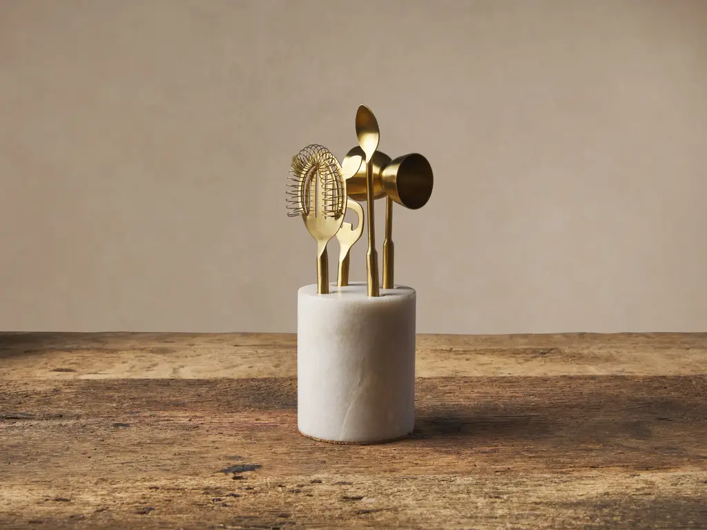 Our Tulum Collection adds a dash of coastal style to your home bar scene. Handwoven rattan adorns the handle of four cocktail tools, bringing natural warmth and texture to the polished stainless steel. A rich marble base brings an elevated touch. We can’t resist a great material mix, and this hits all the right notes.