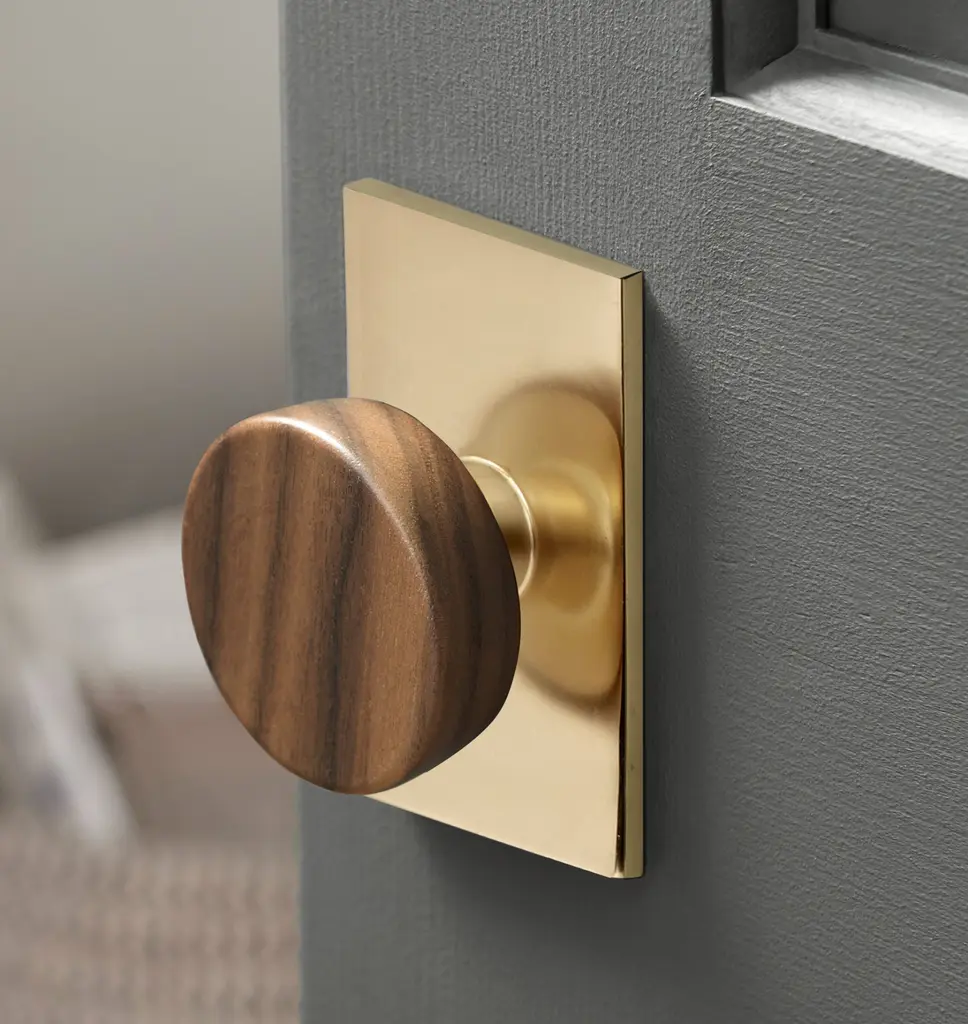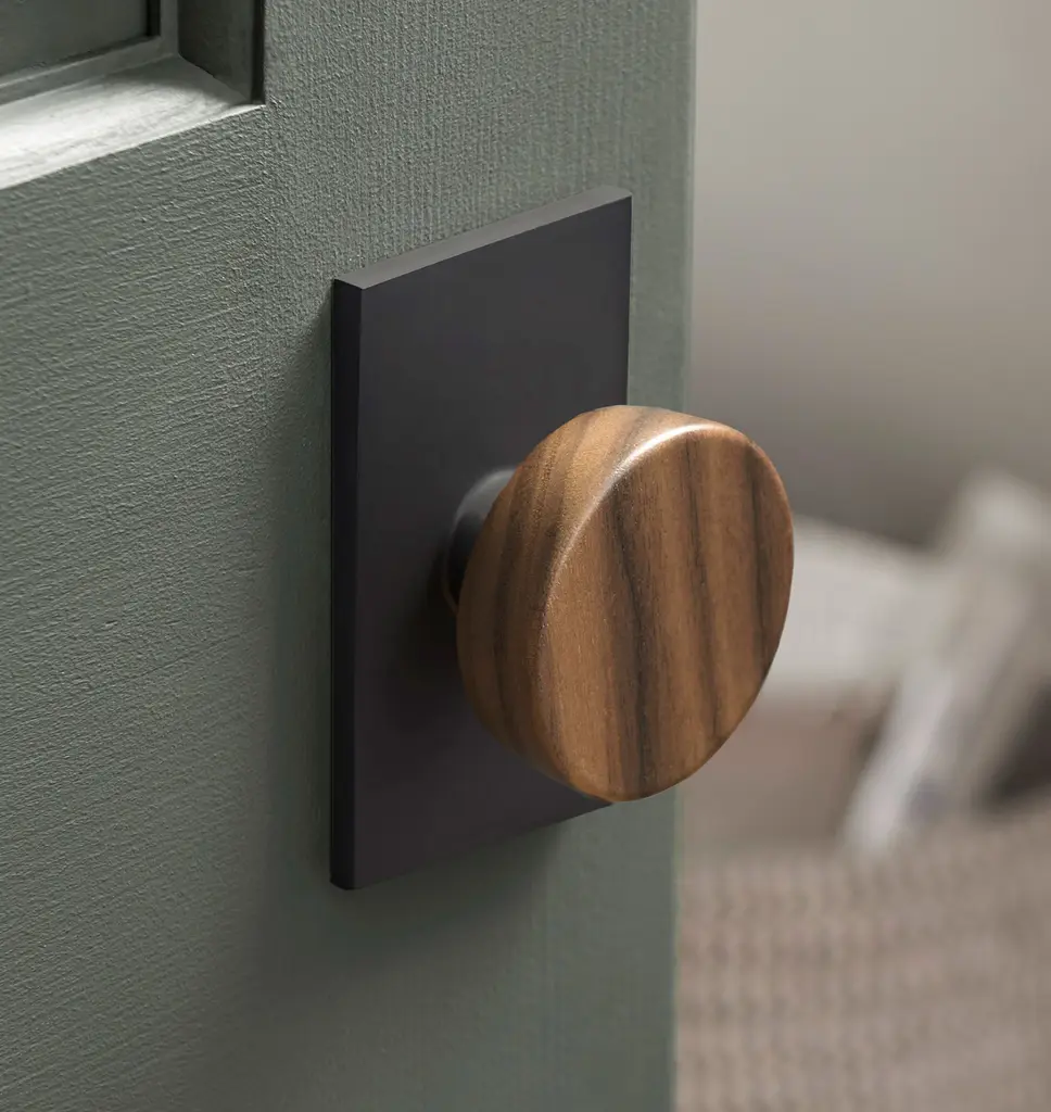 Tumalo Rectangular Interior Door Hardware Tube Latch Set With Walnut Knob