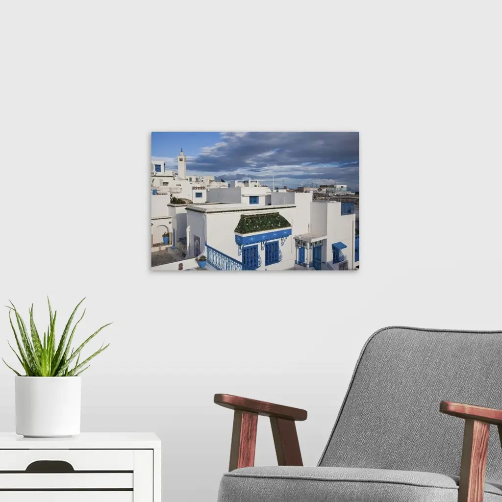 Tunisia, Sidi Bou Said, Elevated Town View