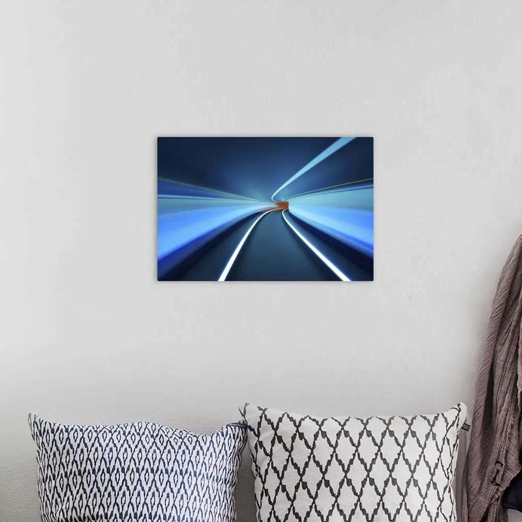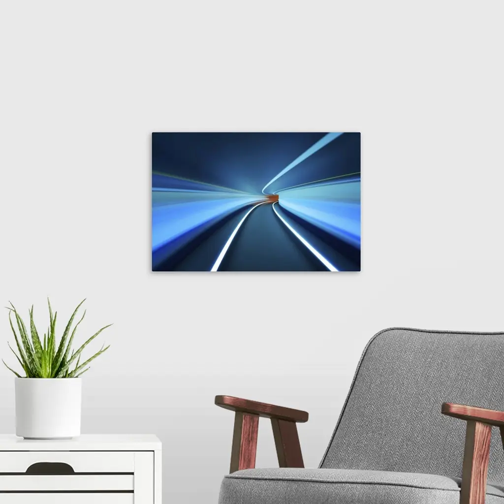 Long exposure image of a tunnel with light trails creating an abstract image.