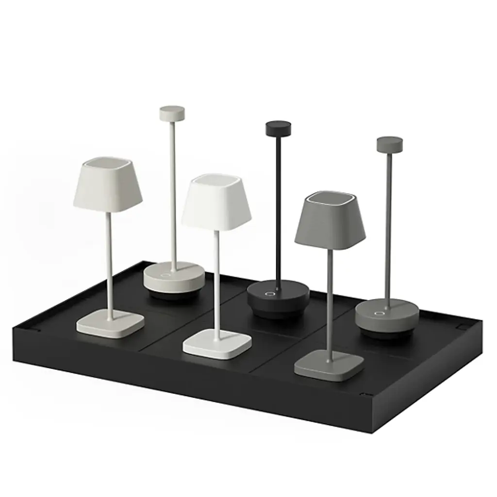 The TURAS/KODU 6 in 1 Charging Station from Blomus keeps your portable lighting powered and ready for use. Designed, as the name implies, for use with the TURAS and KODU series, this compact, rectangular plastic station features six charging bays to power multiple lights simultaneously—no programming required. Just plug it in, drop the fixtures into place, and wait, while it keeps your lights organized, charged, and always glowing.