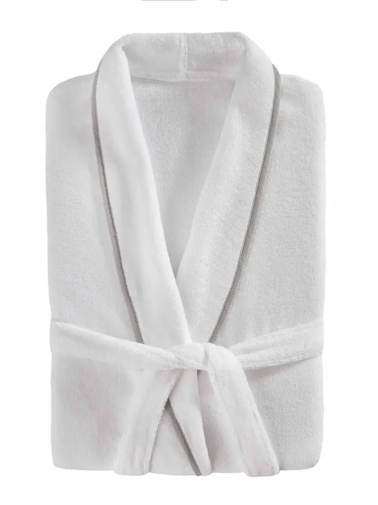 Turkish Plush Bathrobe With Piping In Small/medium In White/grey
