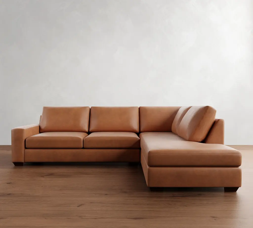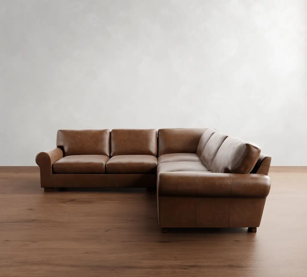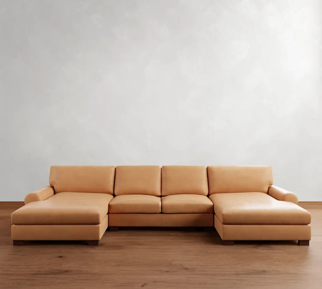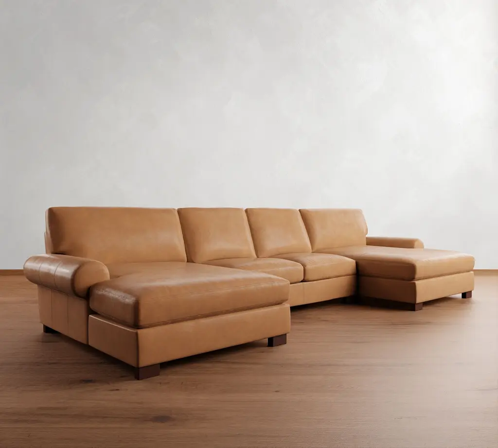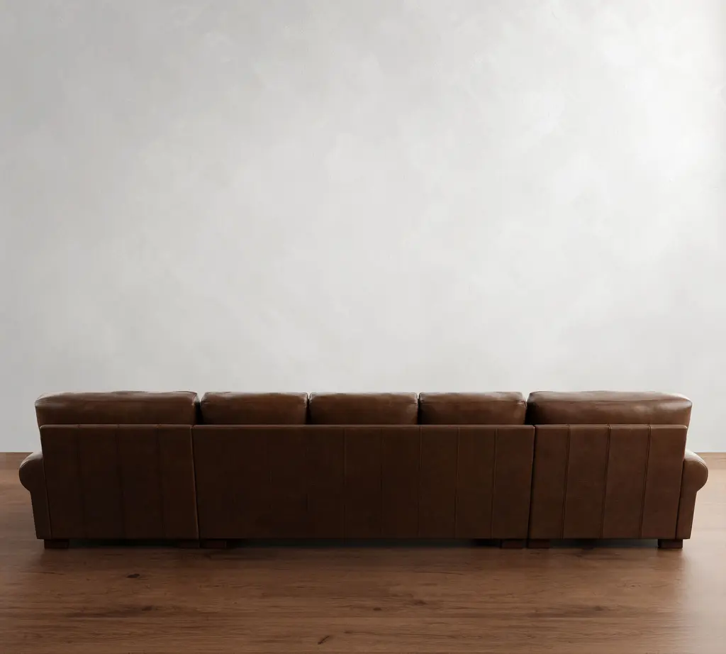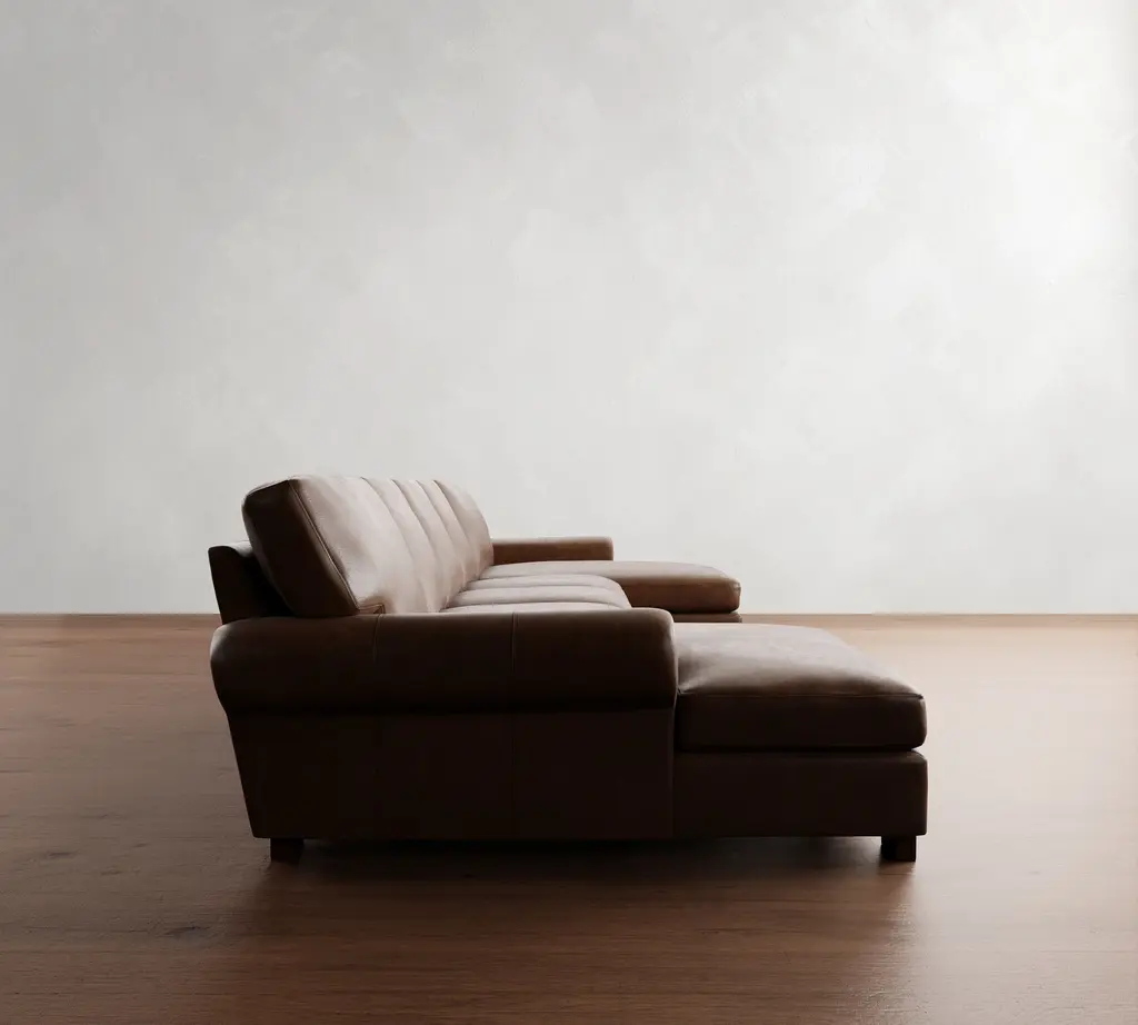 Turner Roll Arm Leather Double Chaise Sectional (141"–174")