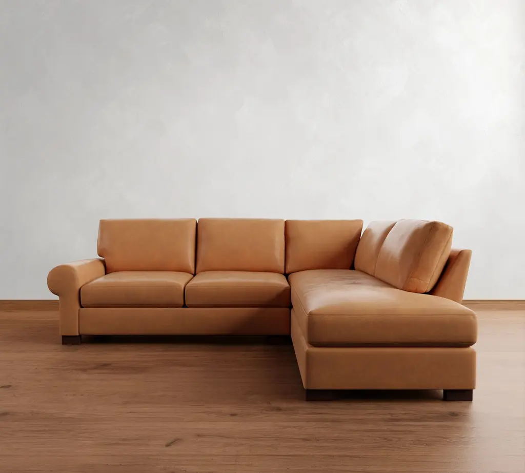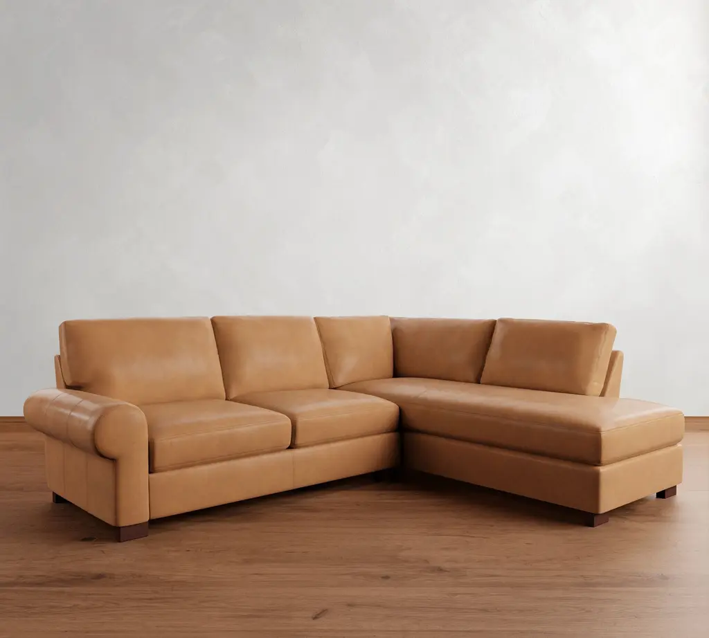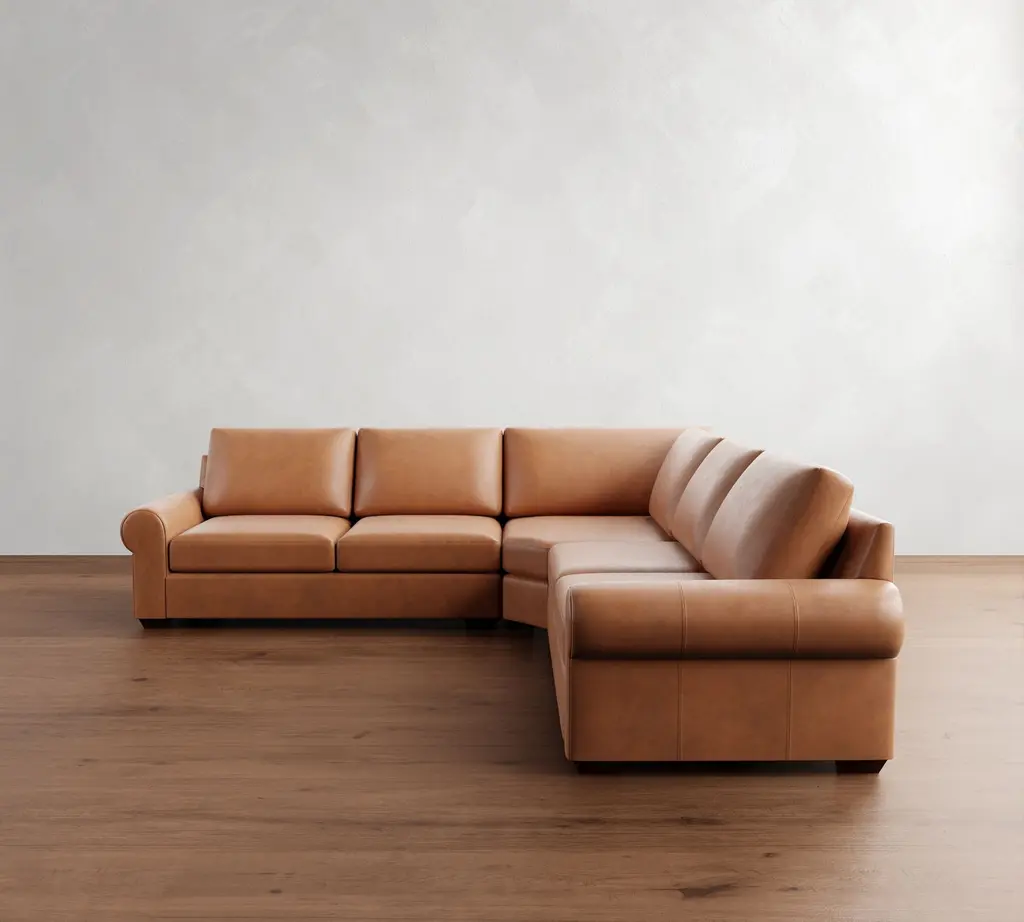 Turner Roll Arm Leather Return Bumper Sectional (109"–127")