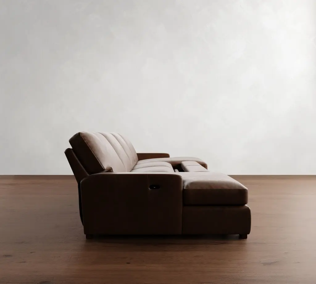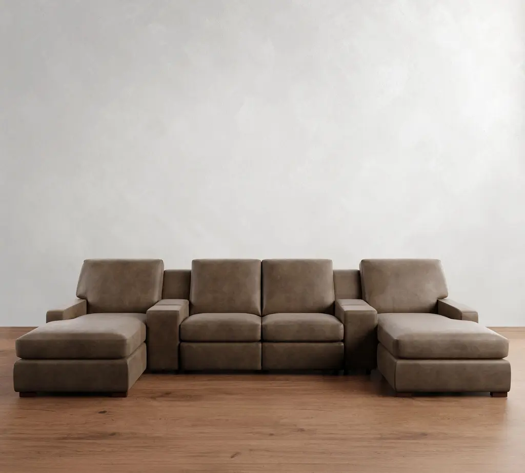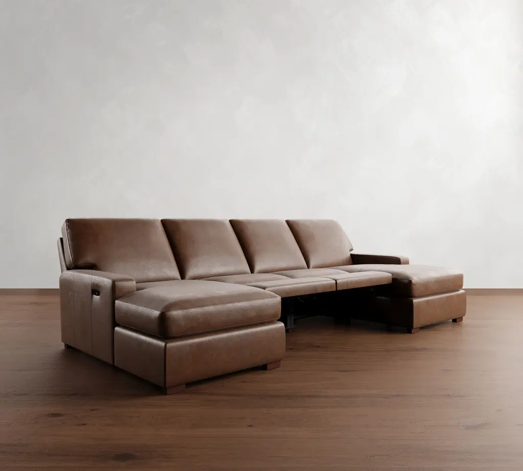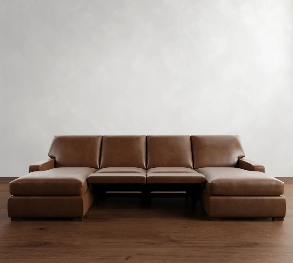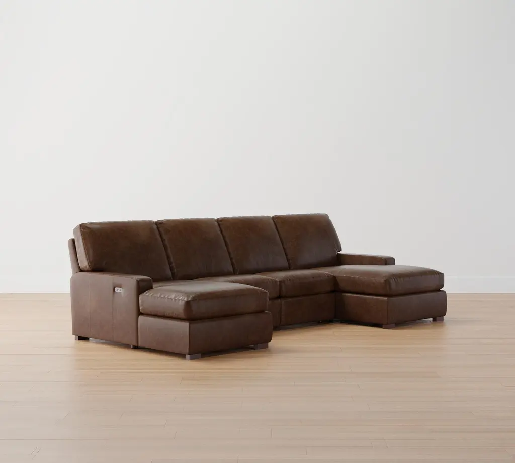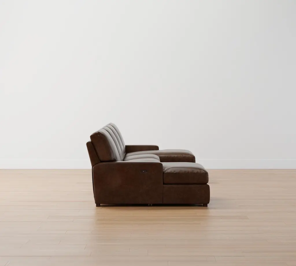 Turner Square Arm Leather Power Reclining Double Chaise Sectional (105"–117")