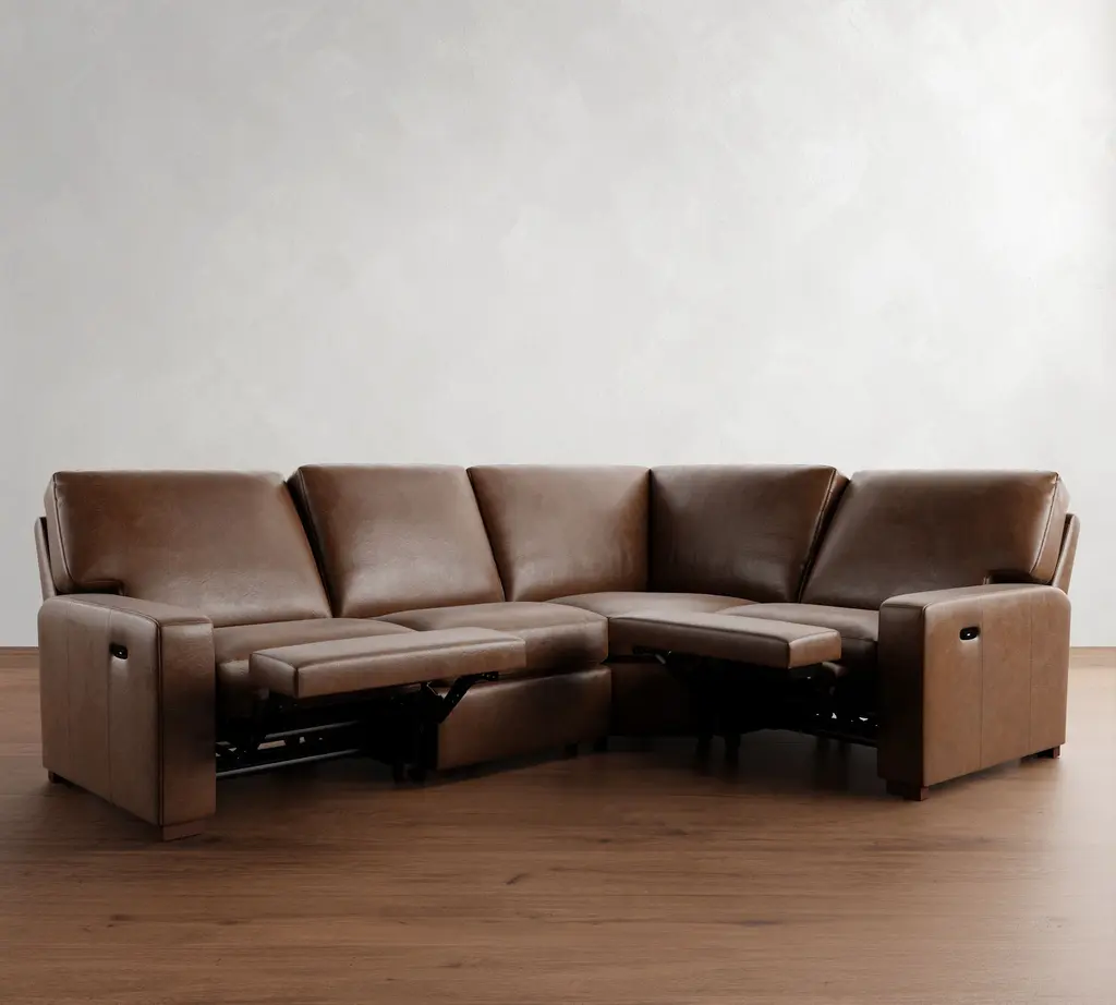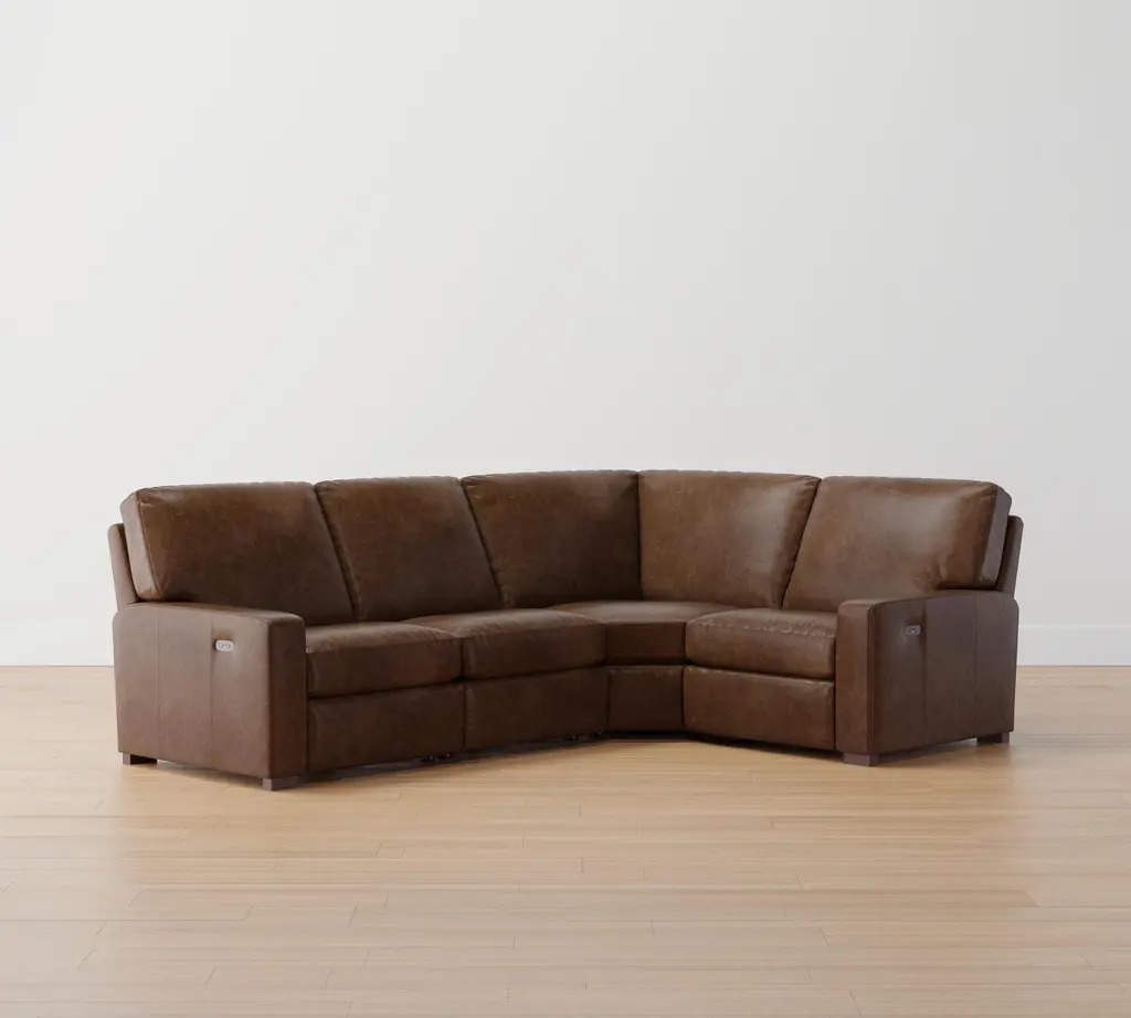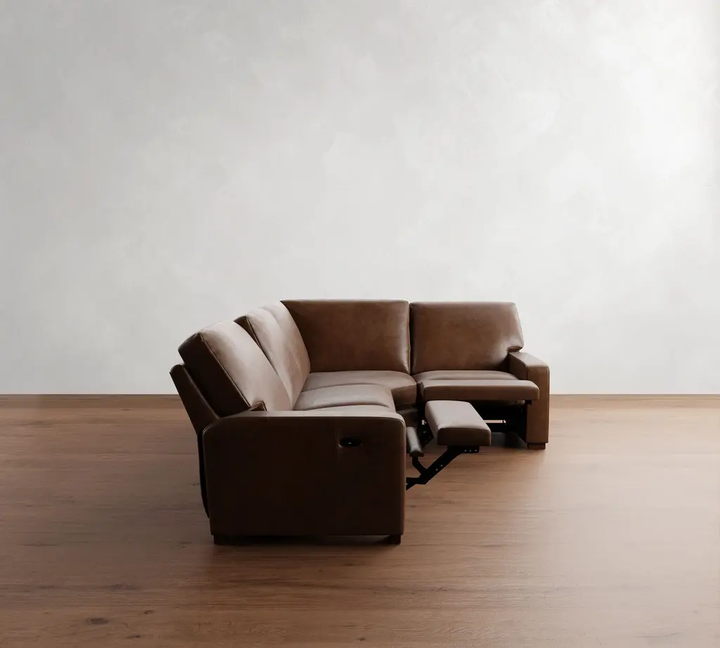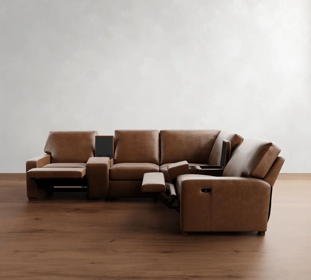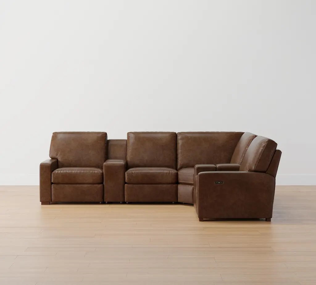 Turner Square Arm Leather Reversible Power Reclining Sectional - Storage Available (115"–128")