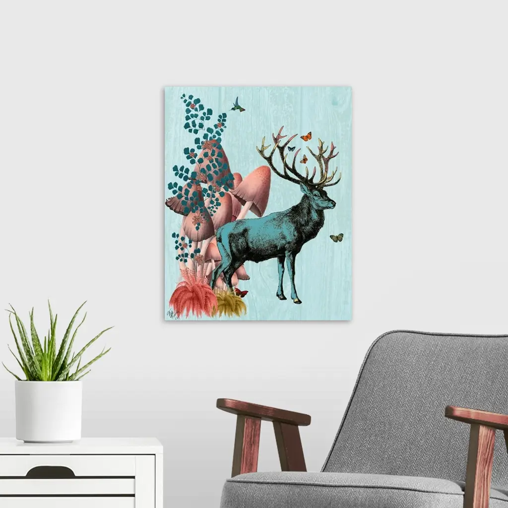 Turquoise Deer In Mushroom Forest wall art for home and office decor. Discover canvas art prints, photos, mural, big canvas art and framed wall art in GreatBigCanvas.com's varied collections.
