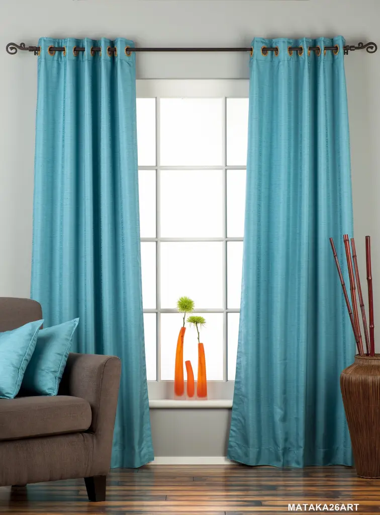 Turquoise Ring Top Matka Raw Silk Curtain / Drape / Panel - Piece