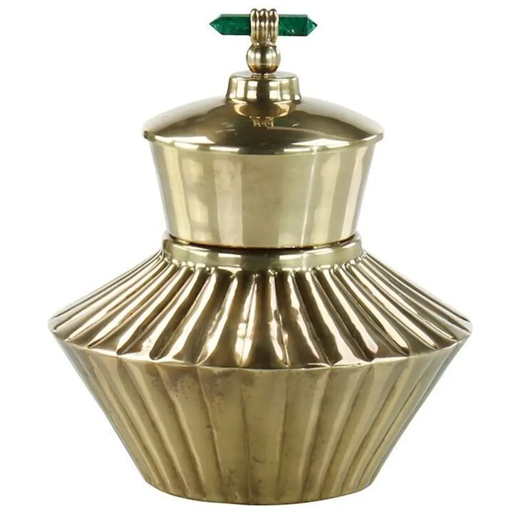 The Turquoise Vessel is a gorgeous decorative accent, demonstrating a stylish blend of opulent tones and natural materials. This brass vessel in a Nickel finish features a rounded design punctuated by a fluted motif enveloping the bottom half. The top section demonstrates a smooth surface with a turquoise handle, lending gorgeous blue-green tones to this metallic design statement.