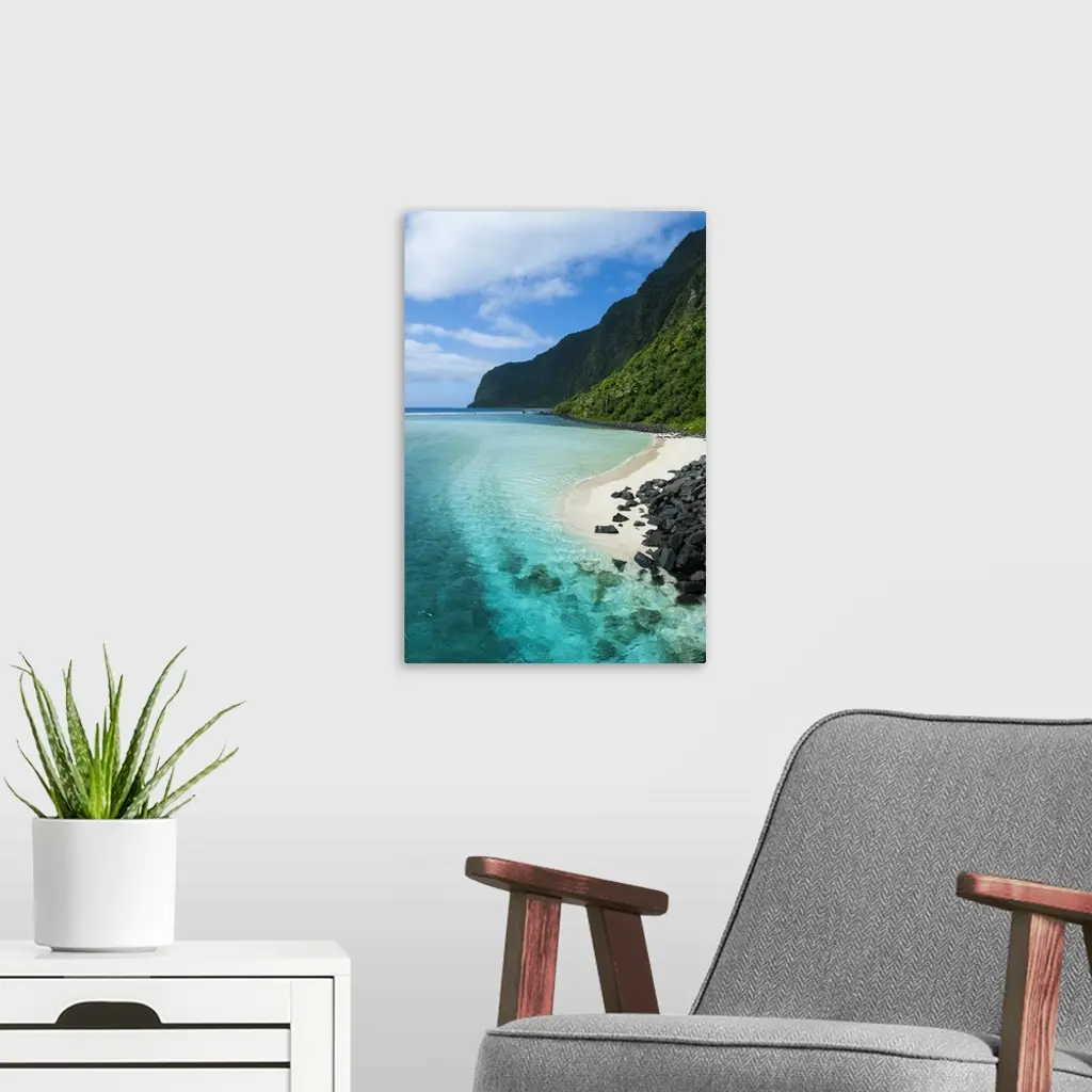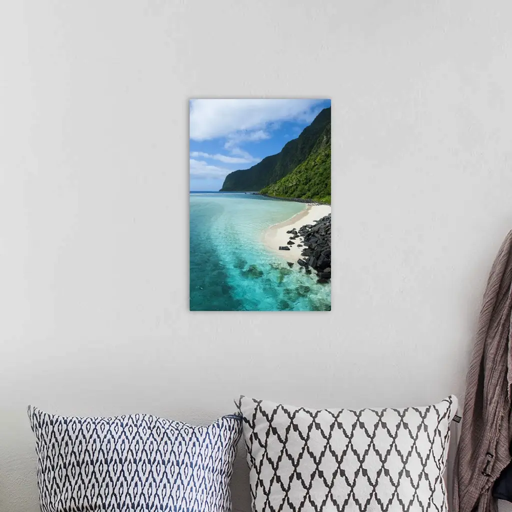 Turquoise water and white sand beach at Ofu Island, Manu'a island group, American Samoa.