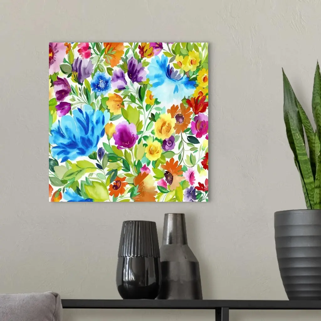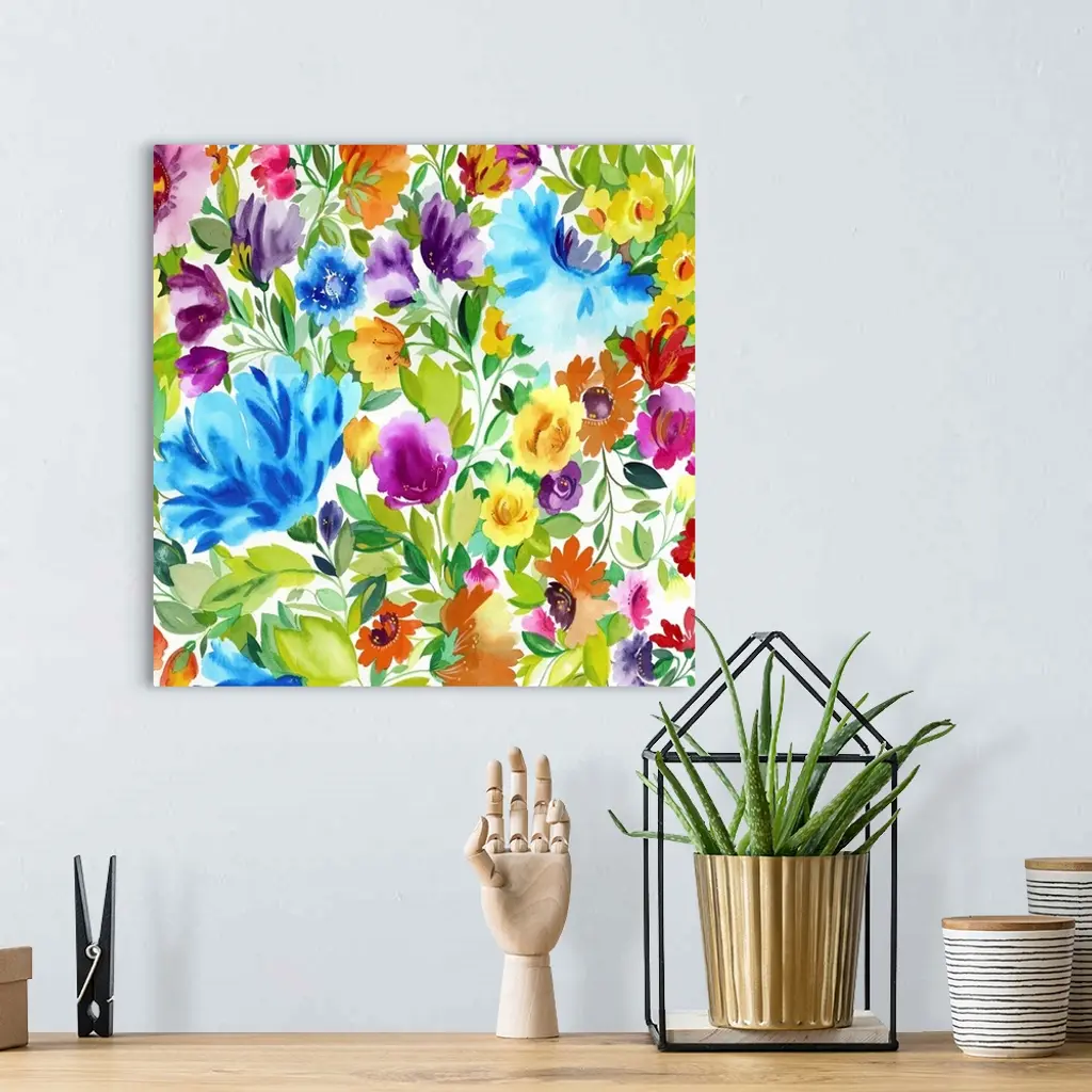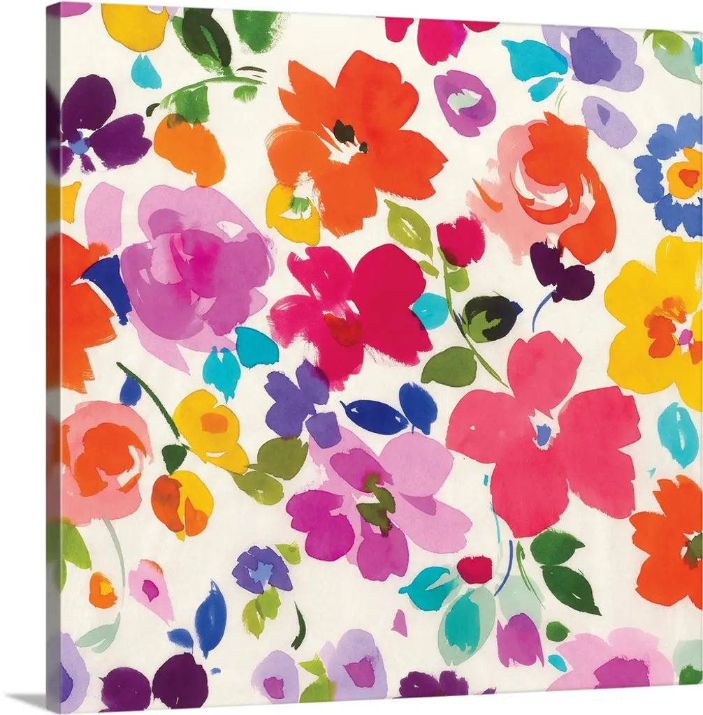 A series of flowers and leaves in warm colors and a soft style against a pale cream background.