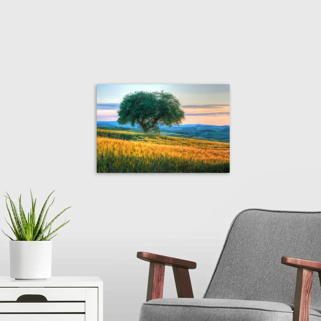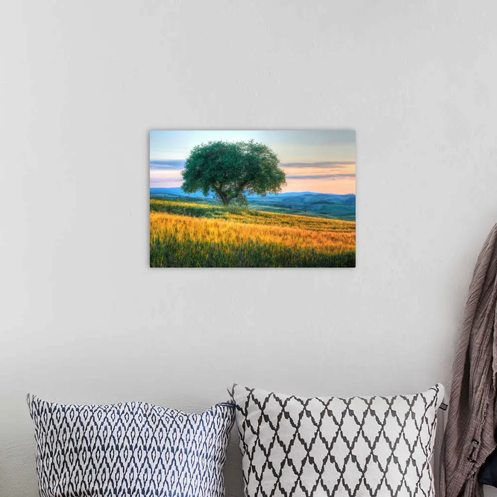 Tuscan Tree Pink Sunset wall art for home and office decor. Discover canvas art prints, photos, mural, big canvas art and framed wall art in GreatBigCanvas.com's varied collections.