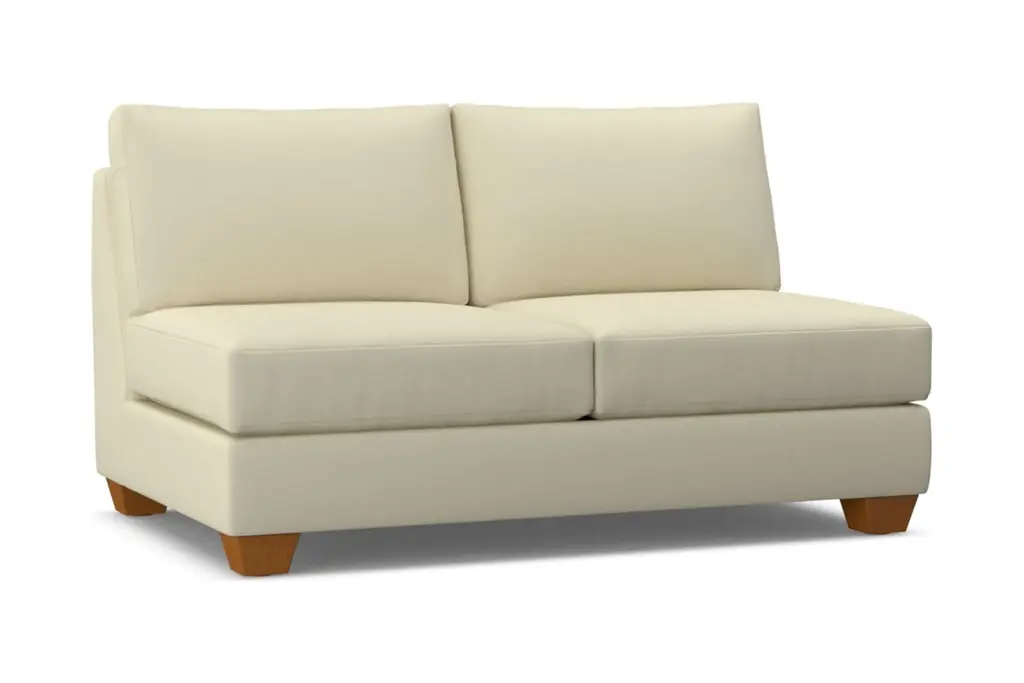 Tuxedo Armless Apartment Size Sofa :: Leg Finish: Pecan