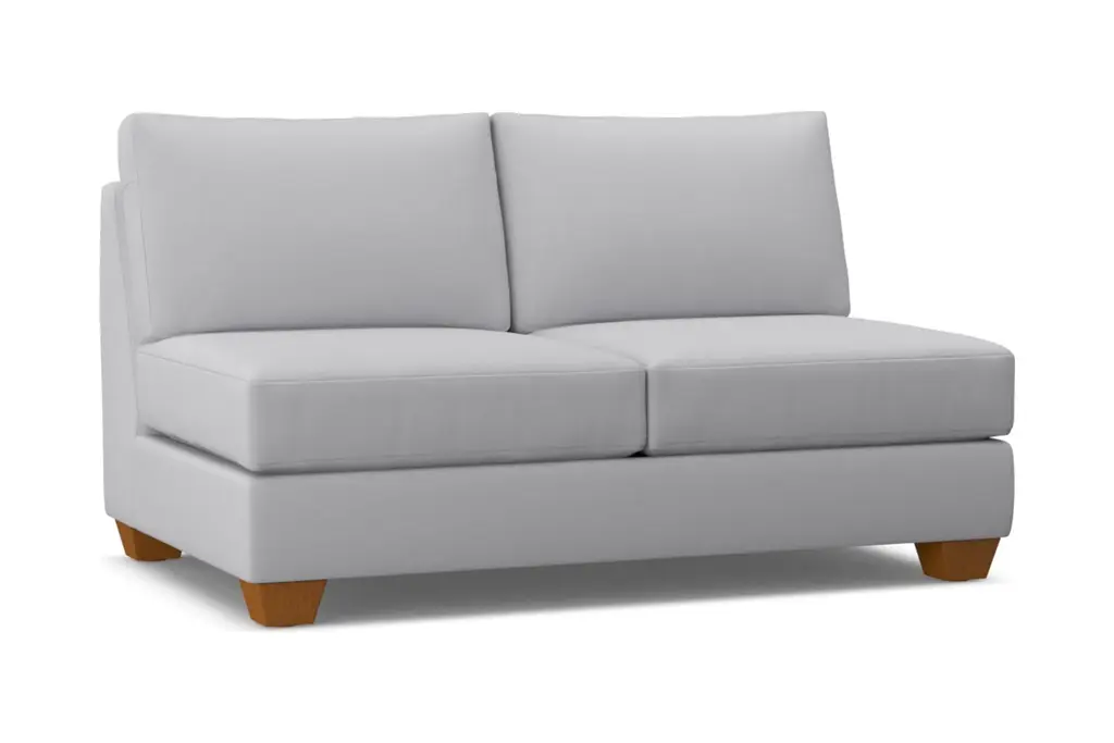 Tuxedo Armless Apartment Size Sofa :: Leg Finish: Pecan