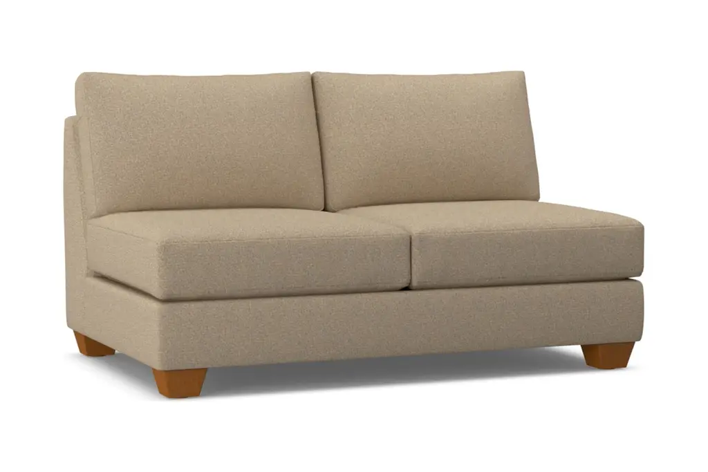Tuxedo Armless Apartment Size Sofa :: Leg Finish: Pecan