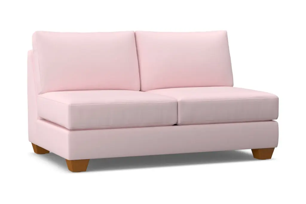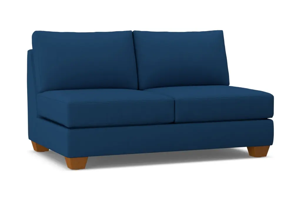 Tuxedo Armless Apartment Size Sofa :: Leg Finish: Pecan