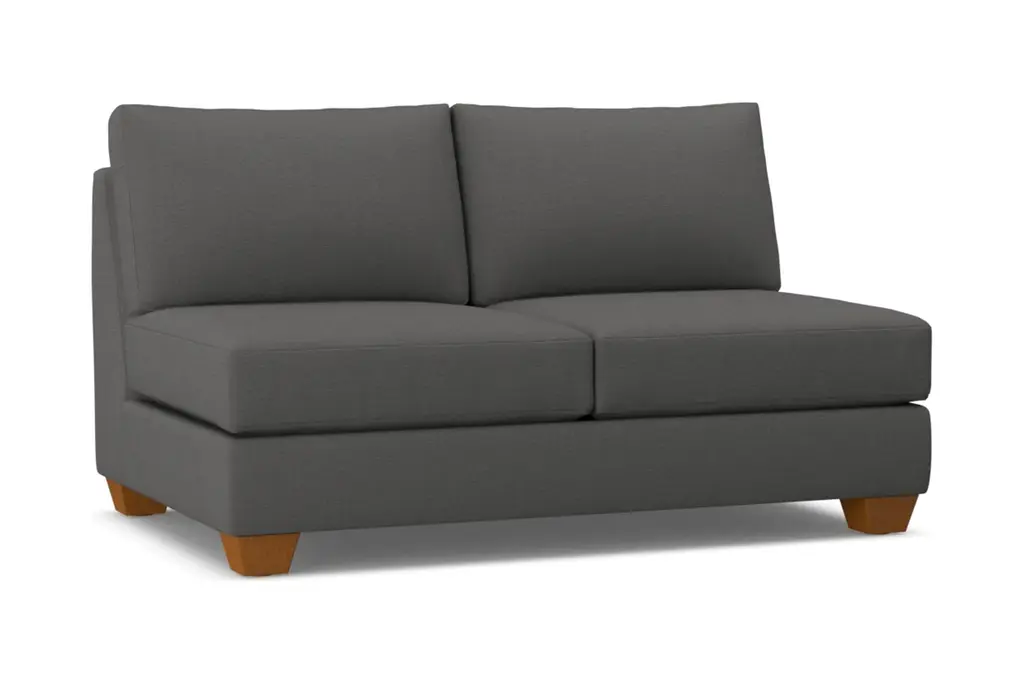 Tuxedo Armless Apartment Size Sofa :: Leg Finish: Pecan