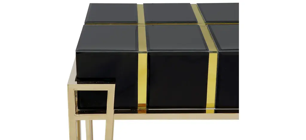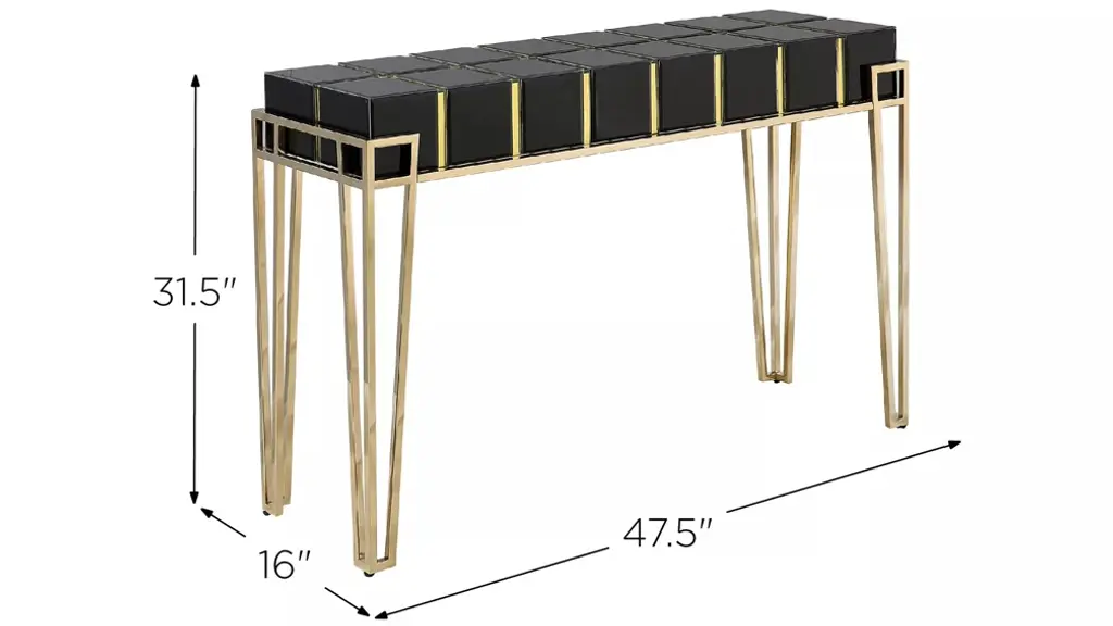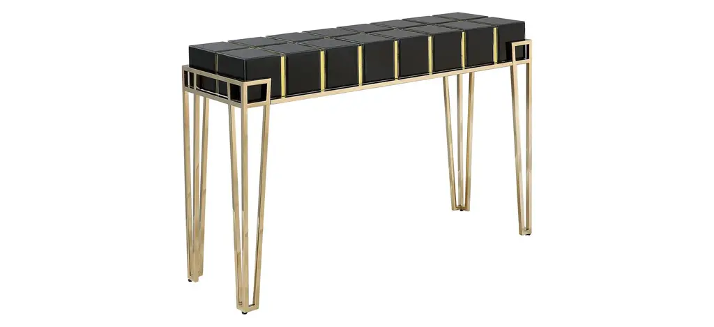 The Tuxedo Console glistens, ready to create modern flair to an entryway, living room, or bedroom. The gold hairpin legs add luster to the regal, black glass top and leave enough space below for a decorative element. Aptly named the Tuxedo, this console is ready to adorn your home in black tie opulence, night after night.