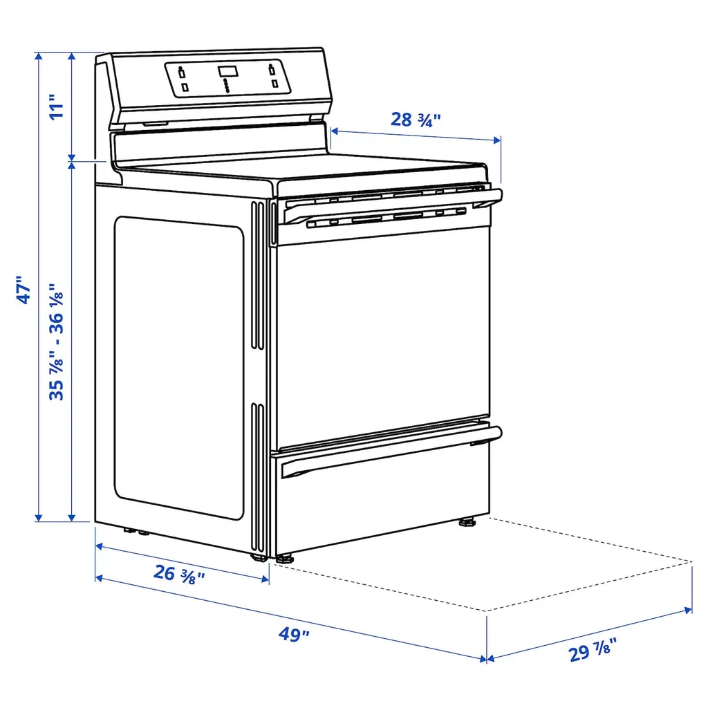 TVÄRSÄKER Range with induction cooktop - Stainless steel. 5 year limited warranty. Read about the terms in the limited warranty brochure. Induction cooktops are extremely energy efficient, fast, and precise as induction technology transfers energy directly into magnetic cookware. Voltage: 240/208V.