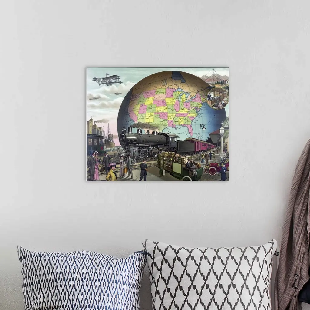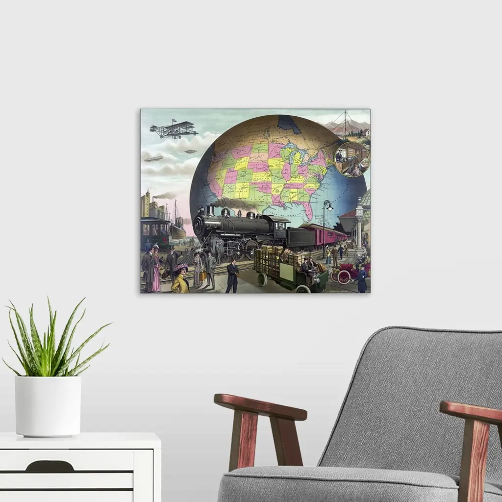 'Twentieth Century Transportation.' Lithograph by E.S. Yates, c1910.